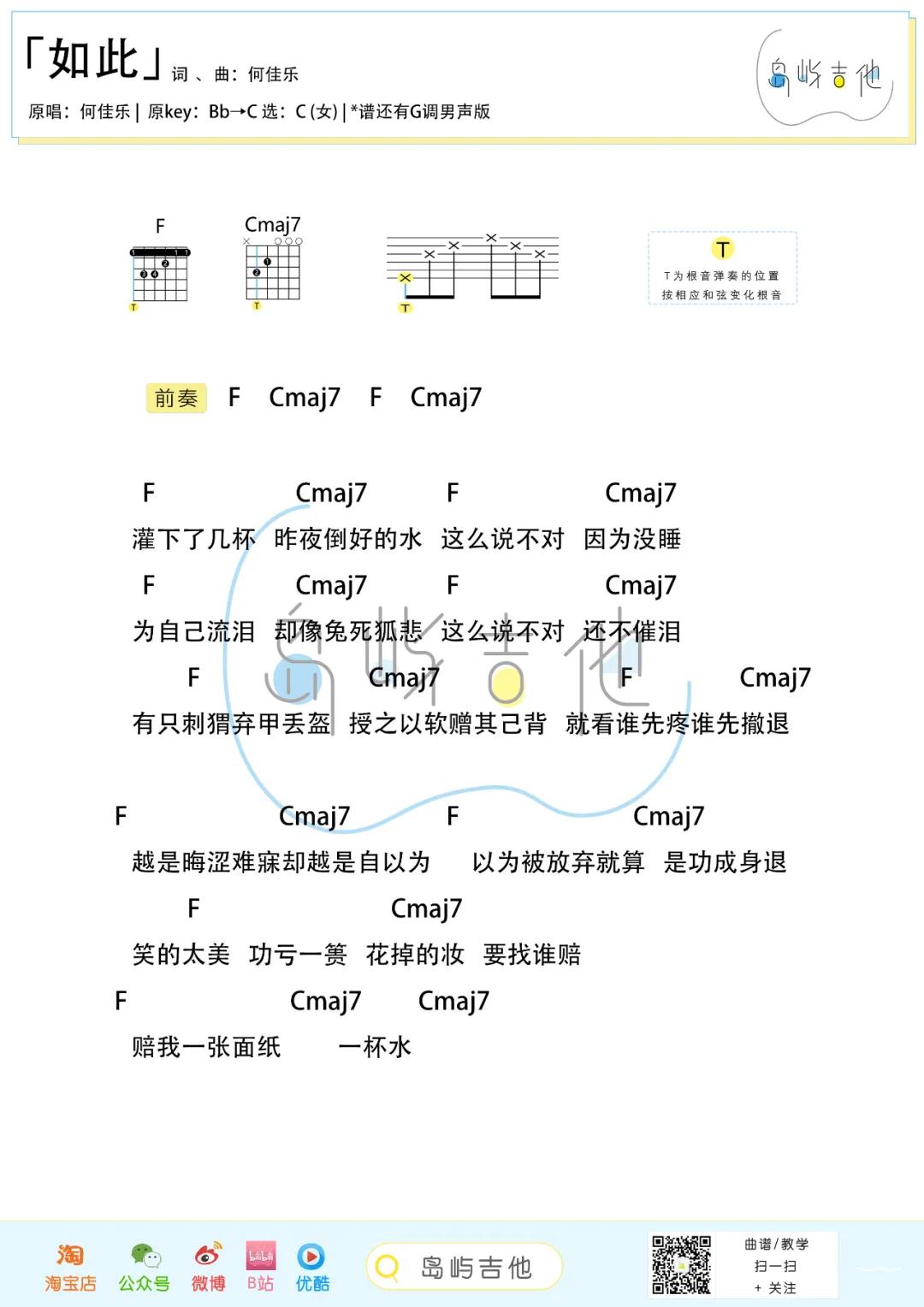 《宁静《如此吉他谱》(G调)》内容来自于互联网,不能保证内容的准确性与完整性,仅供学习交流欣赏,请勿用于其它用途,内容版权归原作者及来源网站所有,如有侵犯到您的权益请来信告知,我们将及时删除。