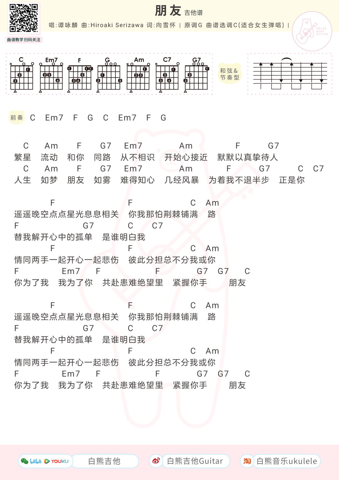 《谭咏麟《朋友吉他谱》(G调)》内容来自于互联网,不能保证内容的准确性与完整性,仅供学习交流欣赏,请勿用于其它用途,内容版权归原作者及来源网站所有,如有侵犯到您的权益请来信告知,我们将及时删除。