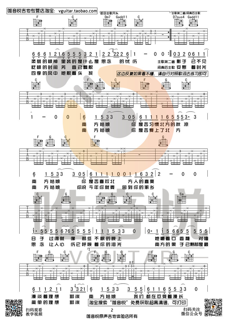 《赵雷《-南方姑娘-吉他谱》》内容来自于互联网,不能保证内容的准确性与完整性,仅供学习交流欣赏,请勿用于其它用途,内容版权归原作者及来源网站所有,如有侵犯到您的权益请来信告知,我们将及时删除。