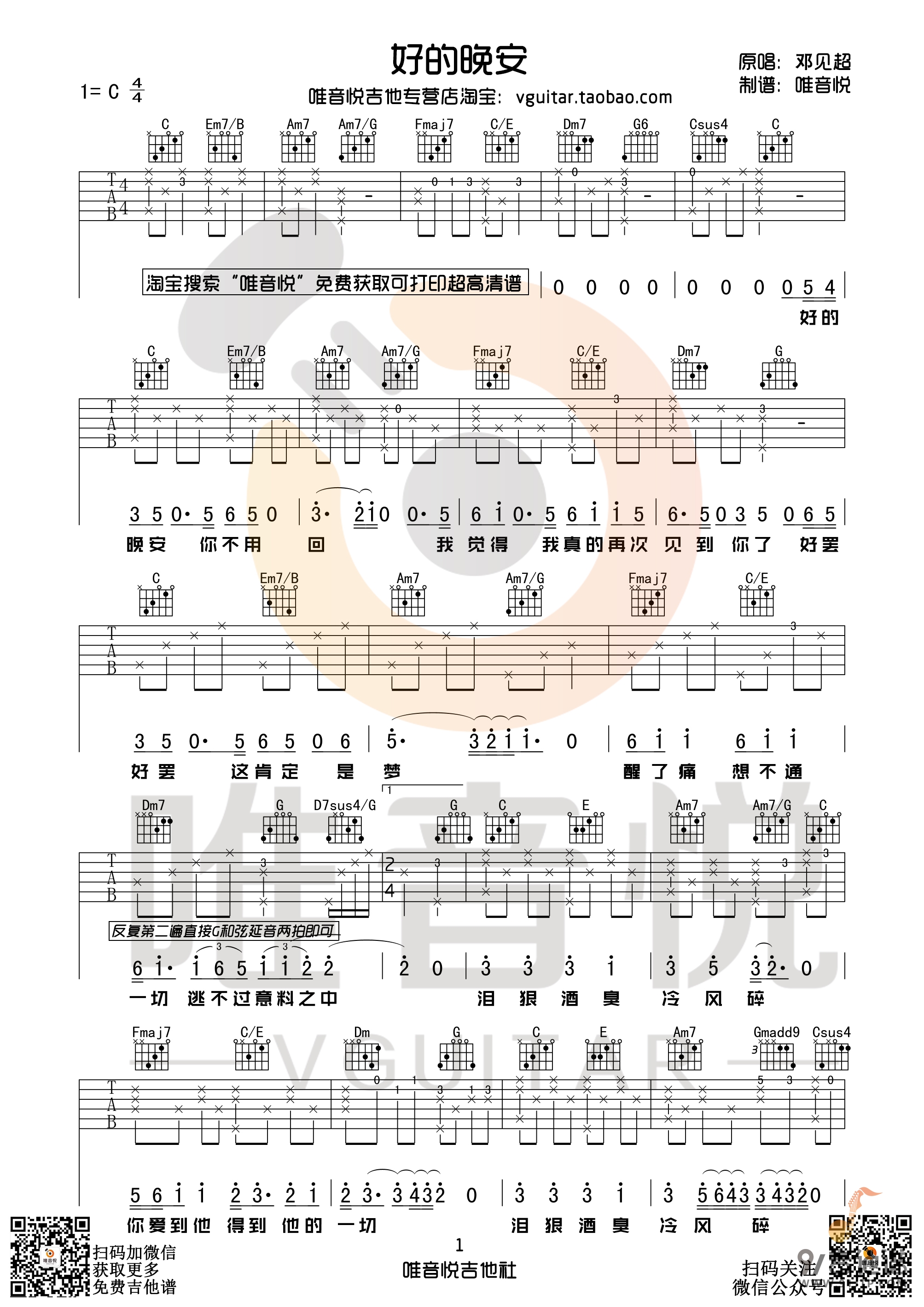 《邓见超《好的晚安吉他谱》》内容来自于互联网,不能保证内容的准确性与完整性,仅供学习交流欣赏,请勿用于其它用途,内容版权归原作者及来源网站所有,如有侵犯到您的权益请来信告知,我们将及时删除。
