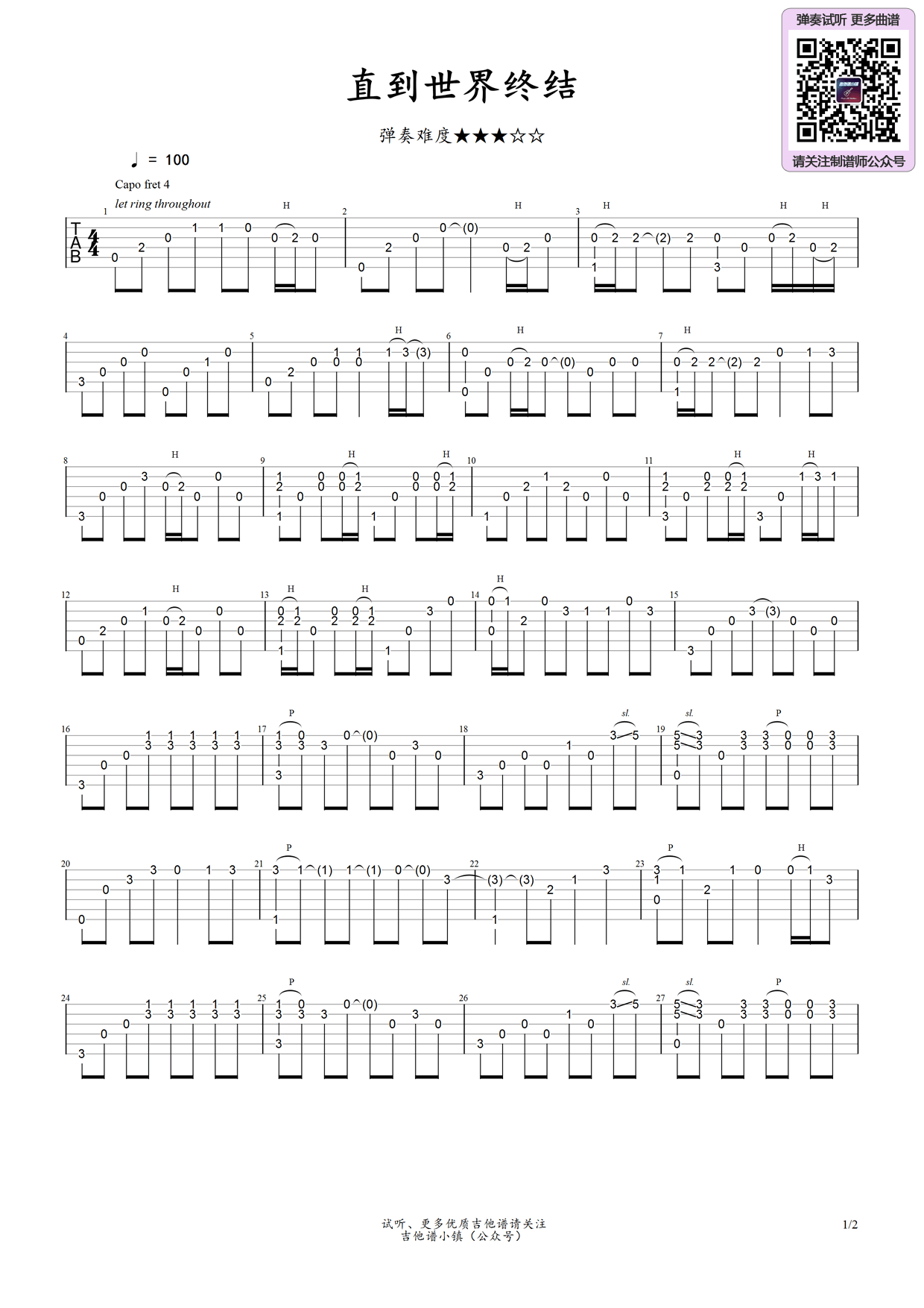 《上杉升《直到世界终结吉他谱》》内容来自于互联网,不能保证内容的准确性与完整性,仅供学习交流欣赏,请勿用于其它用途,内容版权归原作者及来源网站所有,如有侵犯到您的权益请来信告知,我们将及时删除。