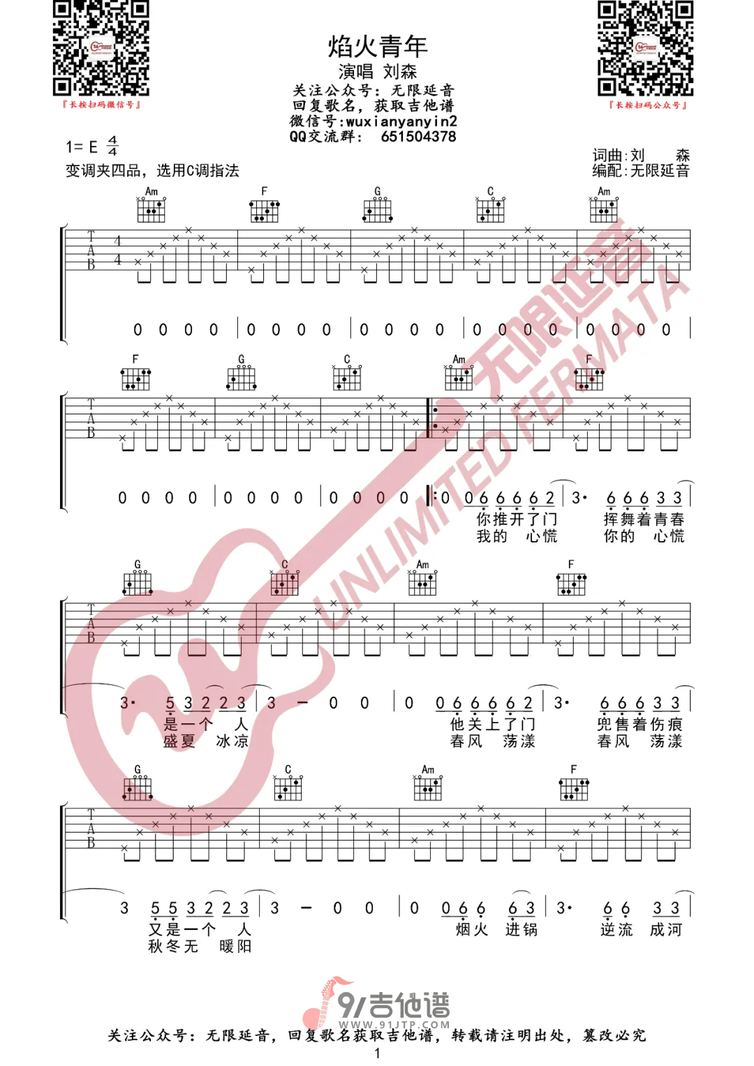 《刘森《焰火青年吉他谱》(C调)》内容来自于互联网,不能保证内容的准确性与完整性,仅供学习交流欣赏,请勿用于其它用途,内容版权归原作者及来源网站所有,如有侵犯到您的权益请来信告知,我们将及时删除。