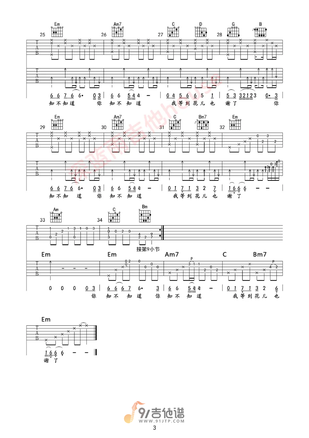 《张学友《我等到花儿也谢了吉他谱》(G调)》内容来自于互联网,不能保证内容的准确性与完整性,仅供学习交流欣赏,请勿用于其它用途,内容版权归原作者及来源网站所有,如有侵犯到您的权益请来信告知,我们将及时删除。