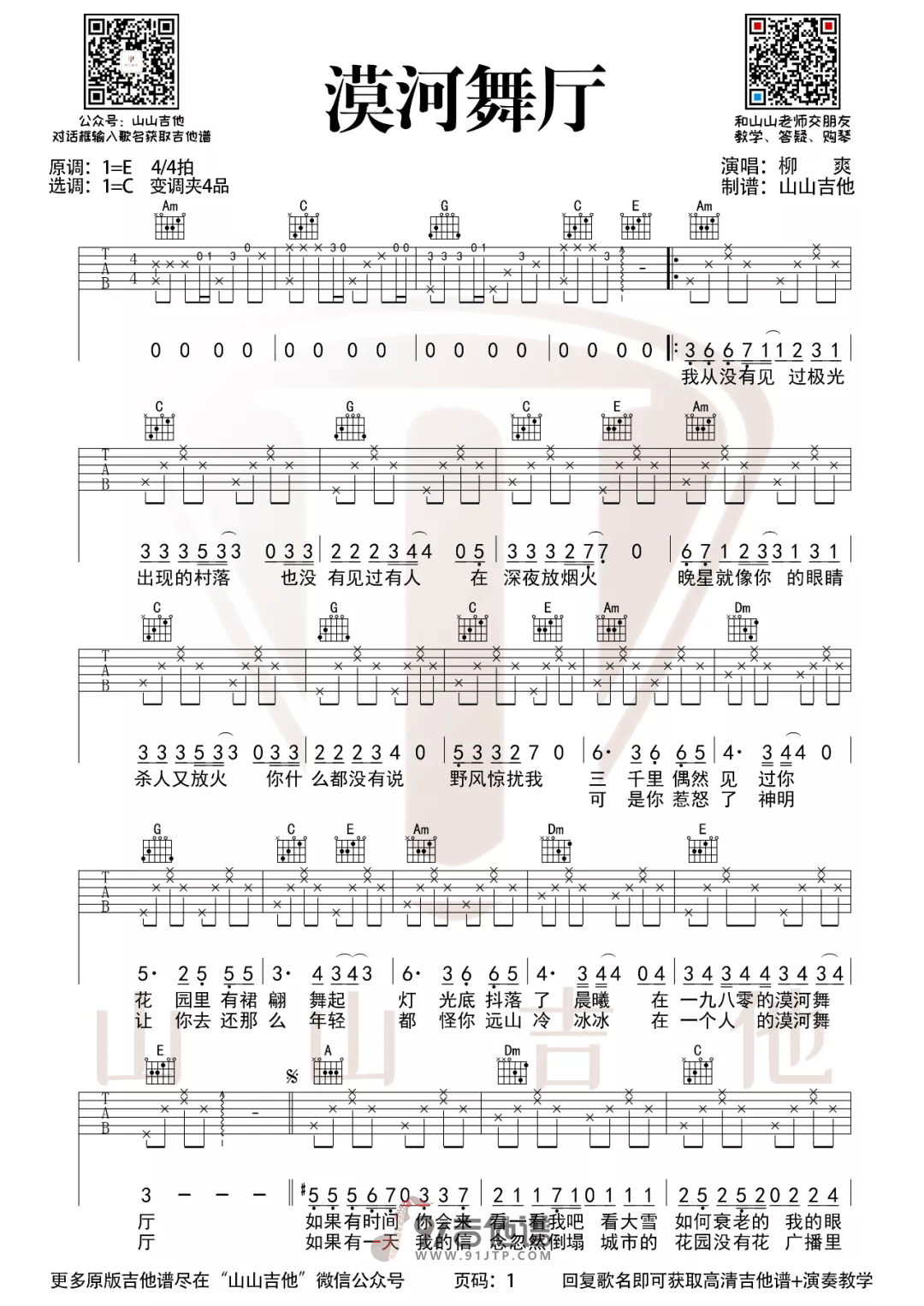 《柳爽《漠河舞厅吉他谱》(C调)》内容来自于互联网,不能保证内容的准确性与完整性,仅供学习交流欣赏,请勿用于其它用途,内容版权归原作者及来源网站所有,如有侵犯到您的权益请来信告知,我们将及时删除。