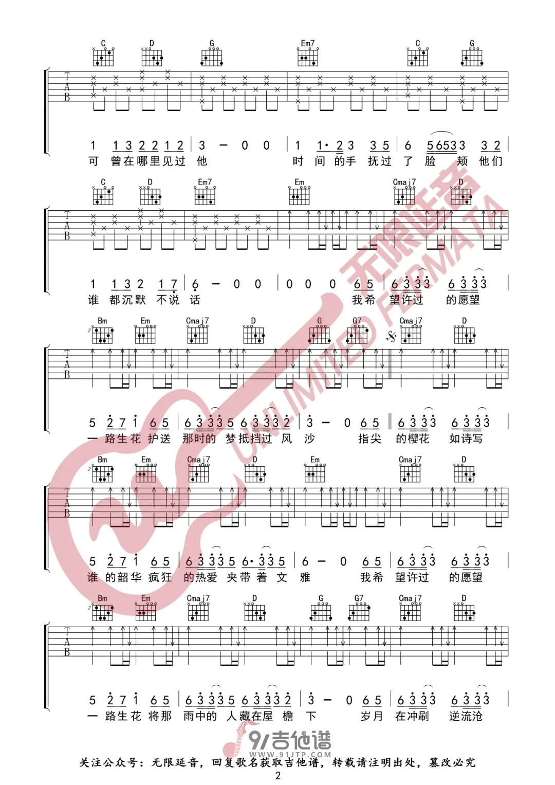 《温奕心《一路生花吉他谱》(G调)》内容来自于互联网,不能保证内容的准确性与完整性,仅供学习交流欣赏,请勿用于其它用途,内容版权归原作者及来源网站所有,如有侵犯到您的权益请来信告知,我们将及时删除。