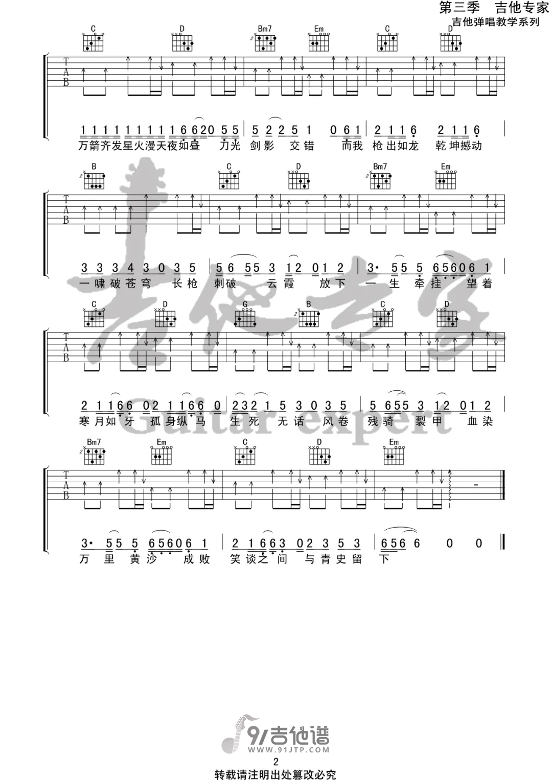 《七叔呢《踏山河吉他谱》(G调)》内容来自于互联网,不能保证内容的准确性与完整性,仅供学习交流欣赏,请勿用于其它用途,内容版权归原作者及来源网站所有,如有侵犯到您的权益请来信告知,我们将及时删除。