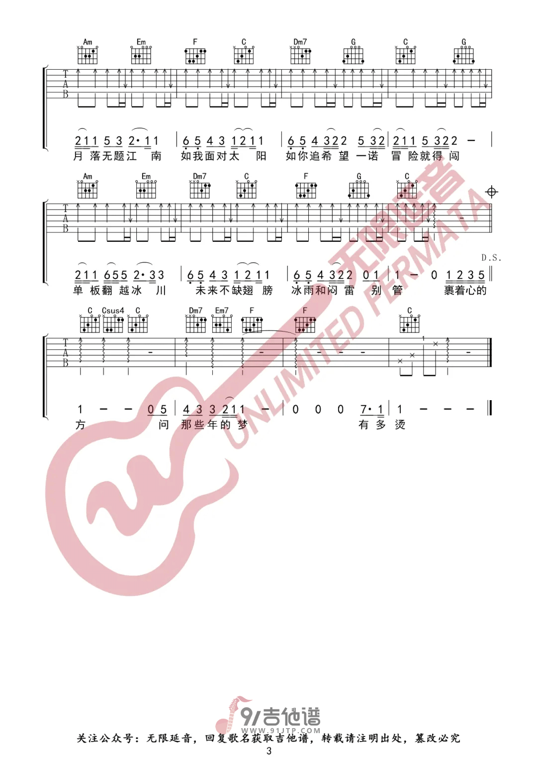这是一首名为《没你也能活下去》的吉他曲谱,原唱是Jony J,而这个版本是由姜铭杨翻唱的。歌曲并非表达绝望,而是在认清爱的本质后更加珍惜爱的信念。歌词中“虽然你不是水我不是鱼,虽然我没你也能活下去”,传达出一种坚定的态度。歌曲表达了甘愿化作飞蛾,投入炉火的决心