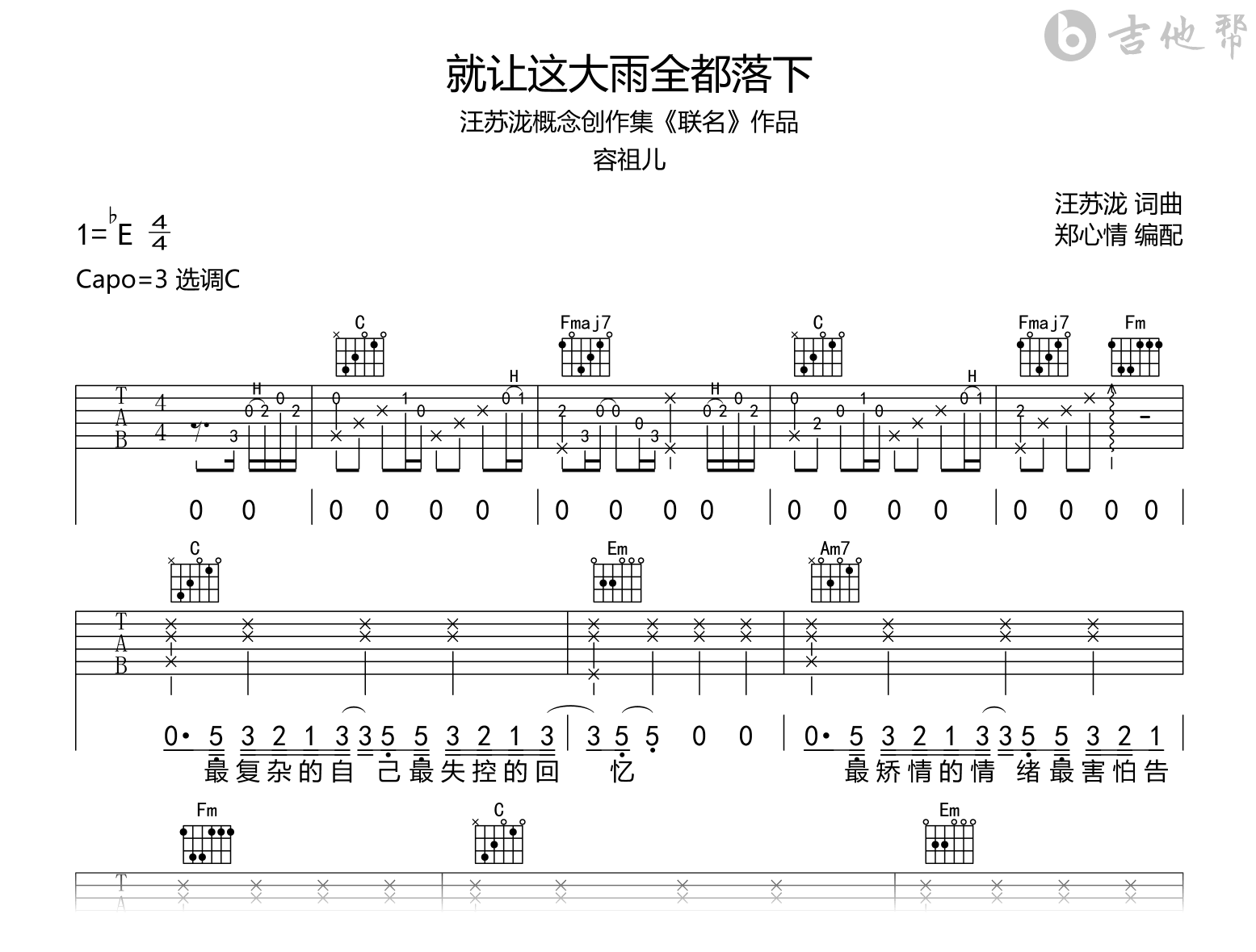 《容祖儿《就让这大雨全都落下吉他谱》(C调)》内容来自于互联网,不能保证内容的准确性与完整性,仅供学习交流欣赏,请勿用于其它用途,内容版权归原作者及来源网站所有,如有侵犯到您的权益请来信告知,我们将及时删除。
