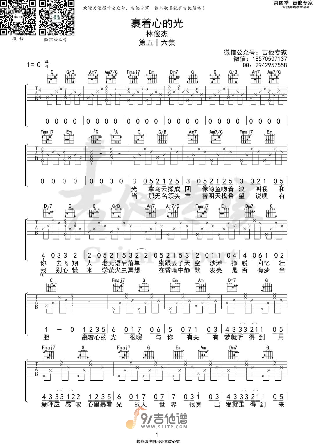 《林俊杰《裹着心的光吉他谱》(C调)》内容来自于互联网,不能保证内容的准确性与完整性,仅供学习交流欣赏,请勿用于其它用途,内容版权归原作者及来源网站所有,如有侵犯到您的权益请来信告知,我们将及时删除。