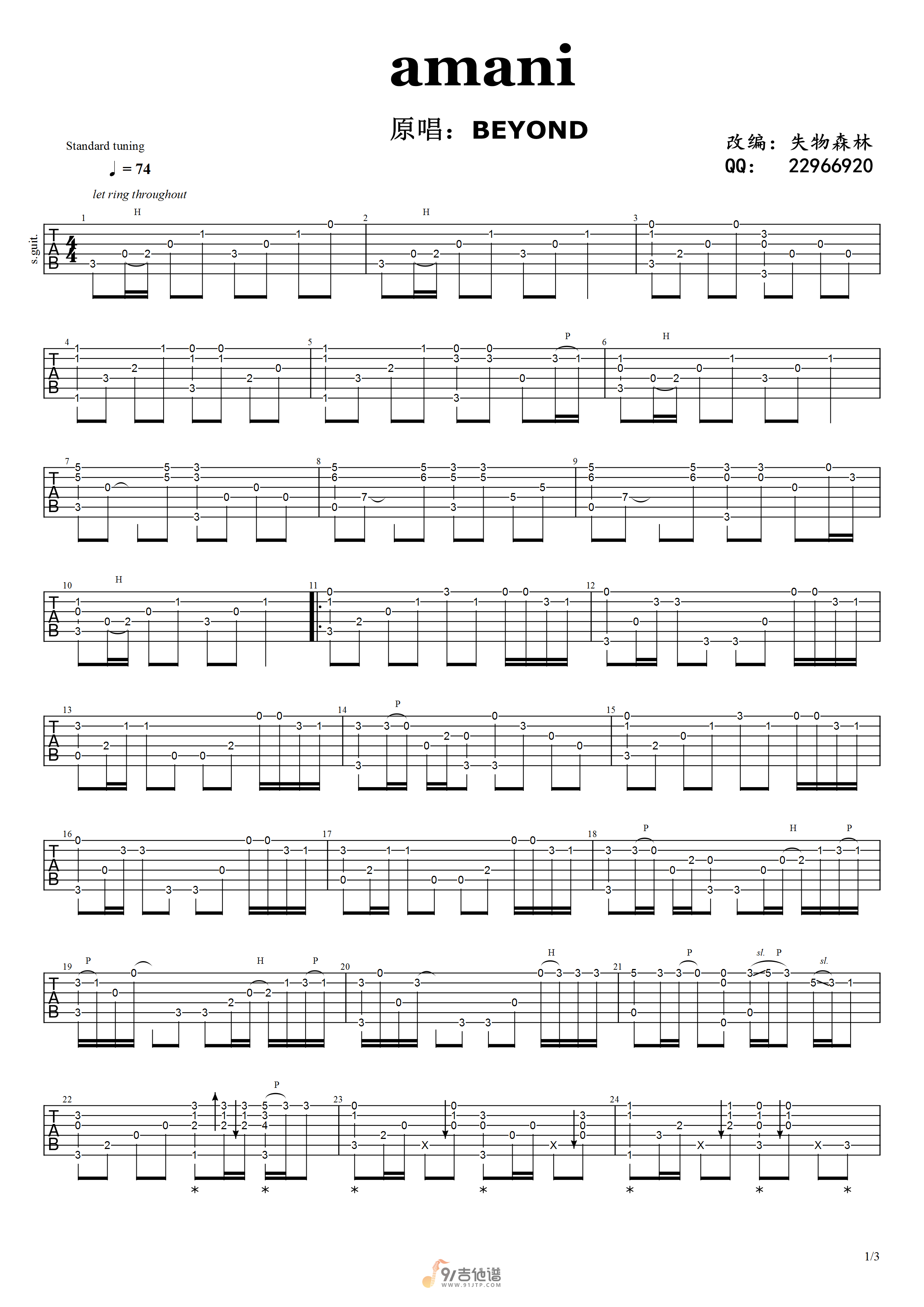《Beyond《Amani吉他谱》》内容来自于互联网,不能保证内容的准确性与完整性,仅供学习交流欣赏,请勿用于其它用途,内容版权归原作者及来源网站所有,如有侵犯到您的权益请来信告知,我们将及时删除。