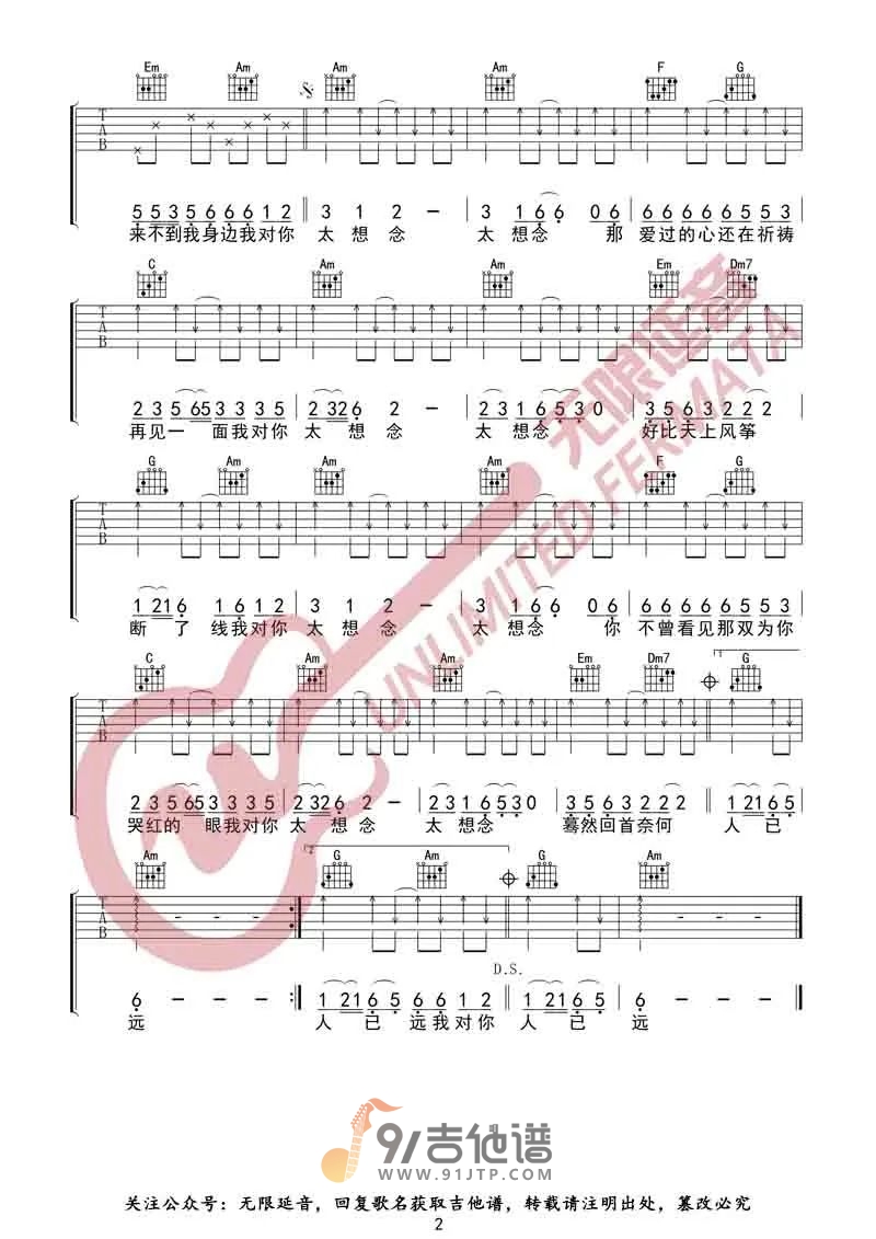 《彭筝《太想念吉他谱》(C调)》内容来自于互联网,不能保证内容的准确性与完整性,仅供学习交流欣赏,请勿用于其它用途,内容版权归原作者及来源网站所有,如有侵犯到您的权益请来信告知,我们将及时删除。