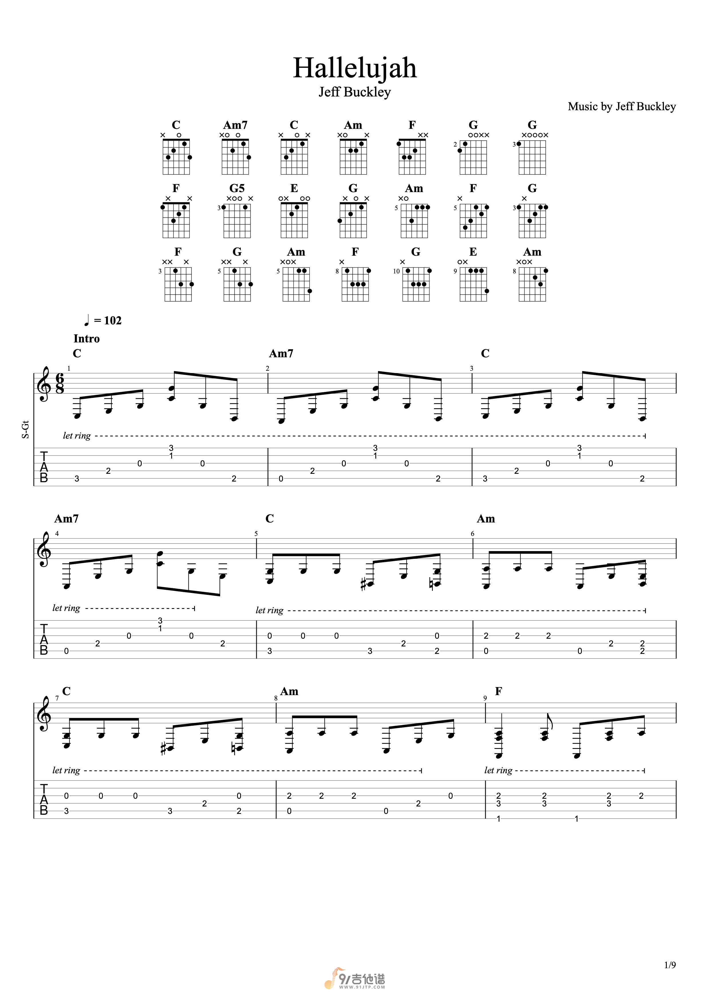 《《Jeff Buckley——Hallelujah 指弹吉他谱》》内容来自于互联网,不能保证内容的准确性与完整性,仅供学习交流欣赏,请勿用于其它用途,内容版权归原作者及来源网站所有,如有侵犯到您的权益请来信告知,我们将及时删除。