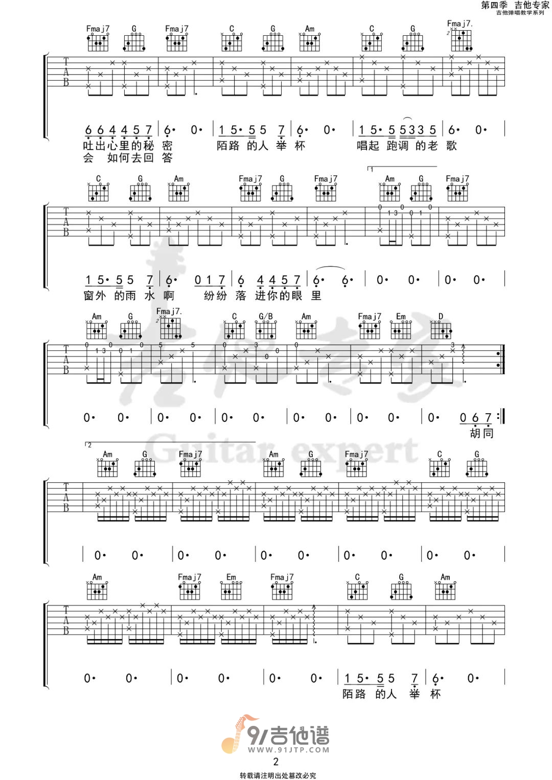 《陈鸿宇《深夜的歌吉他谱》(C调)》内容来自于互联网,不能保证内容的准确性与完整性,仅供学习交流欣赏,请勿用于其它用途,内容版权归原作者及来源网站所有,如有侵犯到您的权益请来信告知,我们将及时删除。