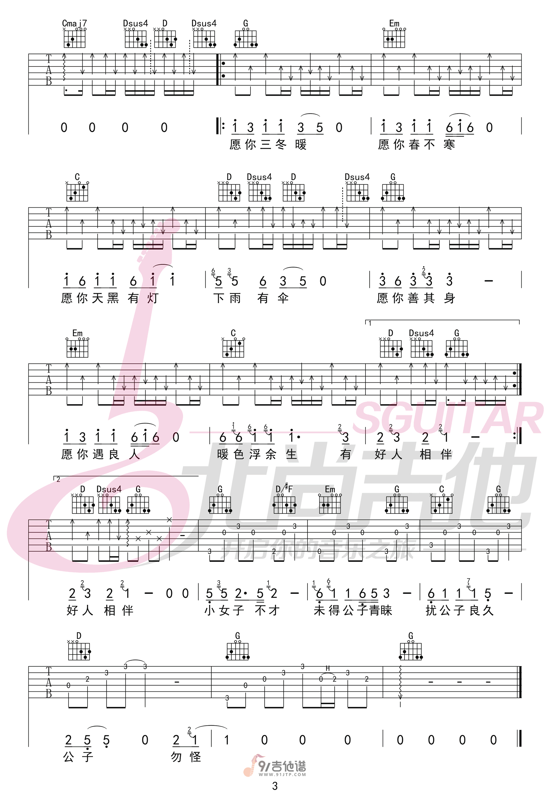 《李春花《公子向北走吉他谱》(G调)》内容来自于互联网,不能保证内容的准确性与完整性,仅供学习交流欣赏,请勿用于其它用途,内容版权归原作者及来源网站所有,如有侵犯到您的权益请来信告知,我们将及时删除。
