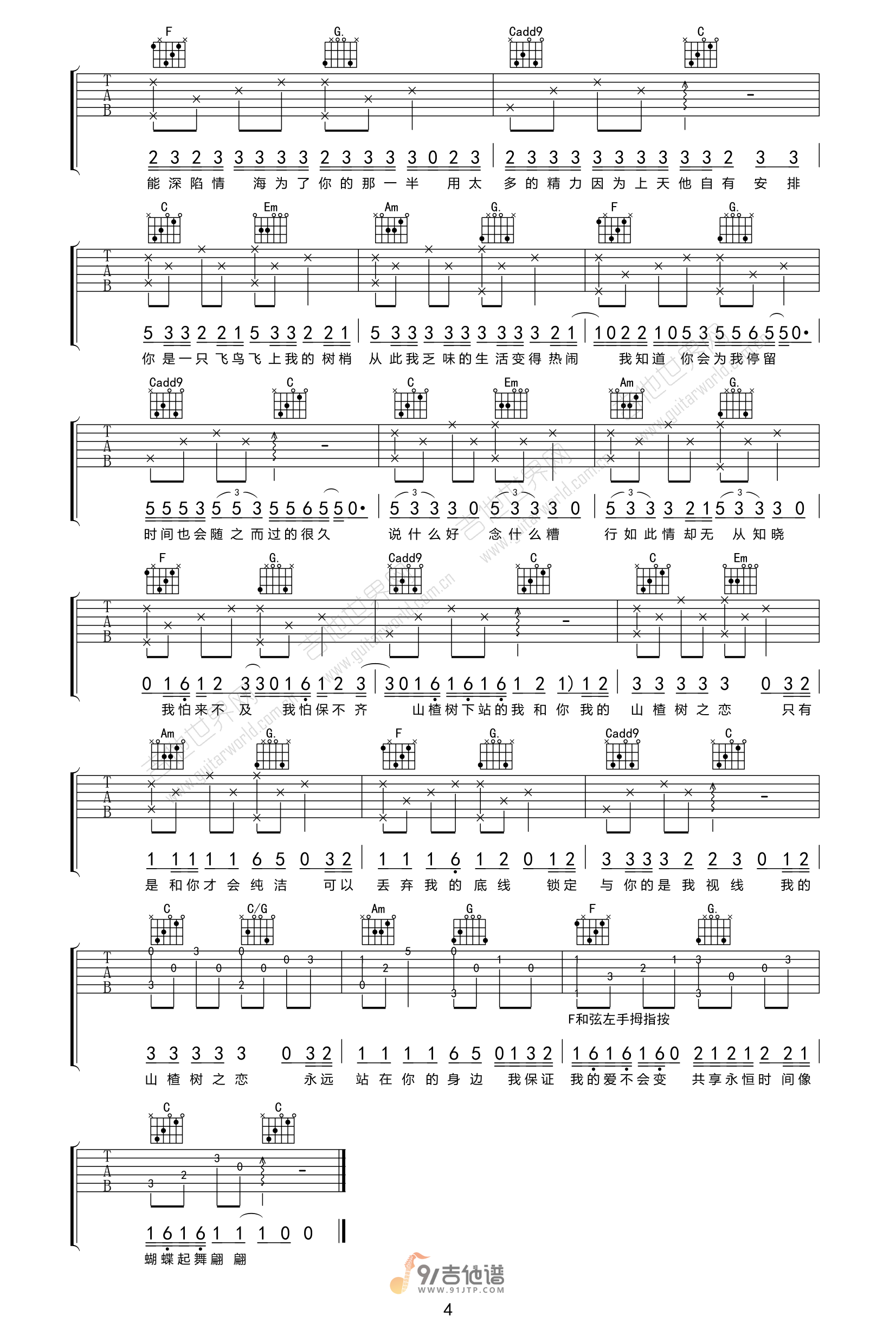 《一首吉他曲谱,为大能人《山楂树之恋吉他谱》(C调)》内容来自于互联网,不能保证内容的准确性与完整性,仅供学习交流欣赏,请勿用于其它用途,内容版权归原作者及来源网站所有,如有侵犯到您的权益请来信告知,我们将及时删除。