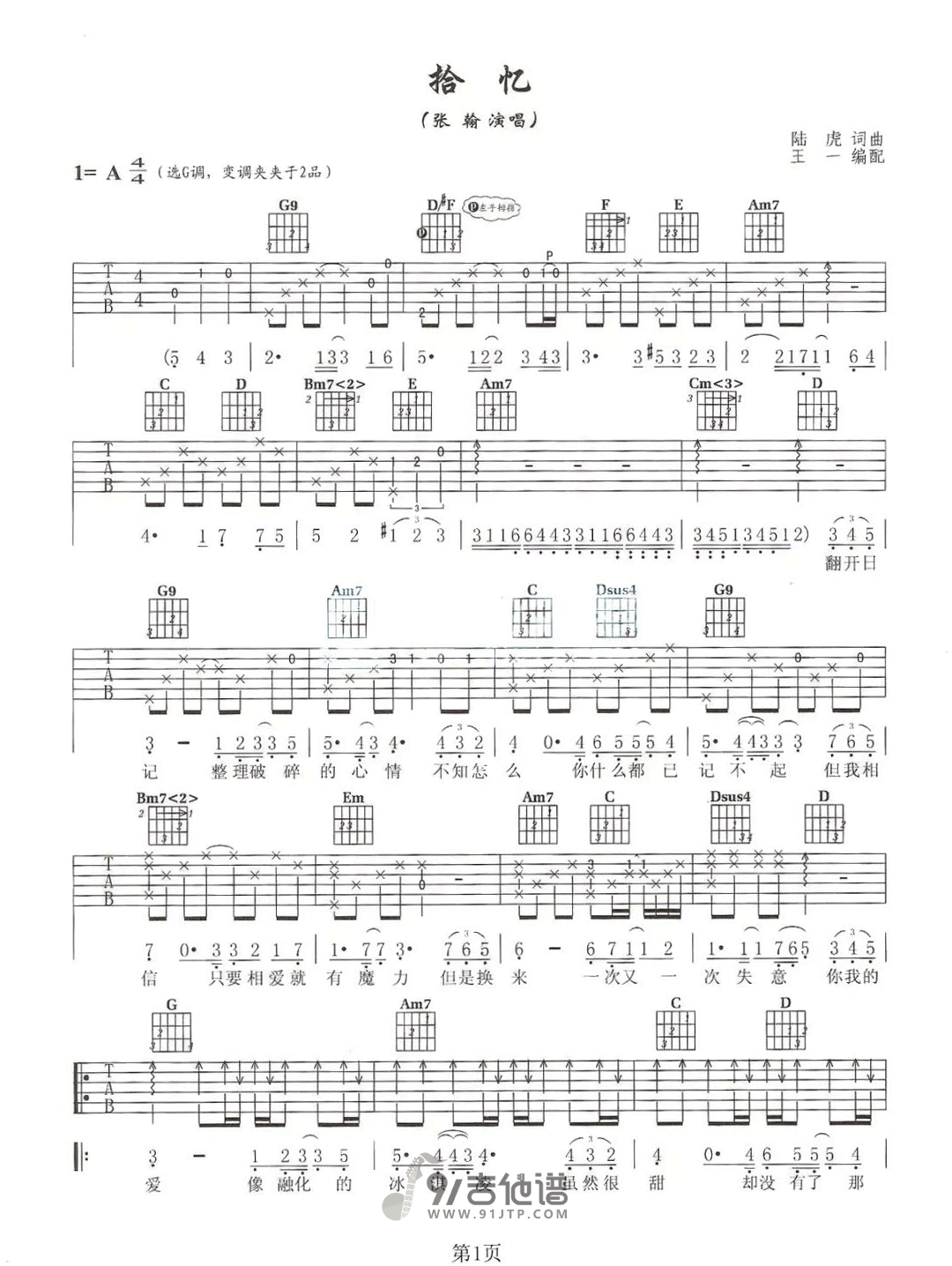 《张翰《拾忆吉他谱》(G调)》内容来自于互联网,不能保证内容的准确性与完整性,仅供学习交流欣赏,请勿用于其它用途,内容版权归原作者及来源网站所有,如有侵犯到您的权益请来信告知,我们将及时删除。