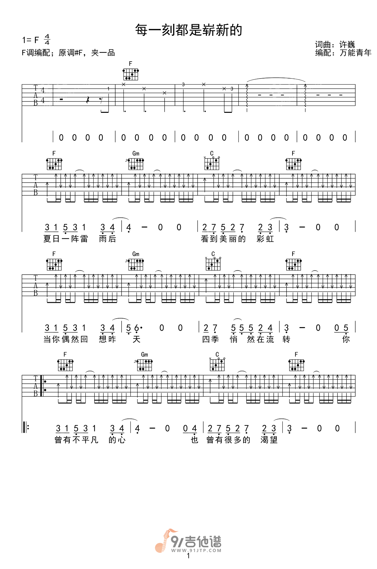 《许巍《每一刻都是崭新的吉他谱》(F调)》内容来自于互联网,不能保证内容的准确性与完整性,仅供学习交流欣赏,请勿用于其它用途,内容版权归原作者及来源网站所有,如有侵犯到您的权益请来信告知,我们将及时删除。