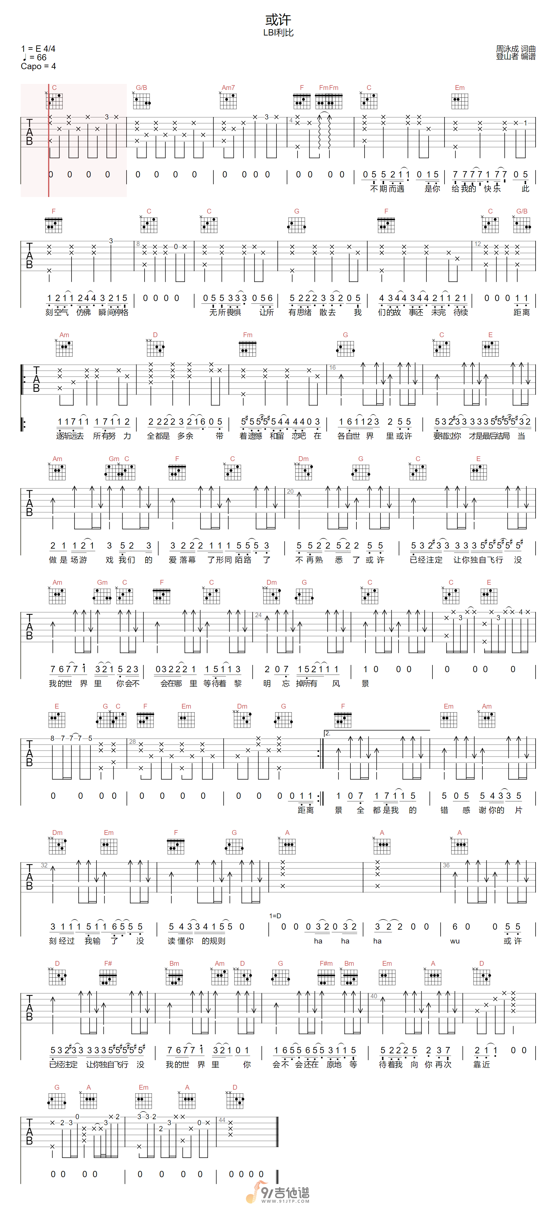 《LBI利比《或许吉他谱》(C调)》内容来自于互联网,不能保证内容的准确性与完整性,仅供学习交流欣赏,请勿用于其它用途,内容版权归原作者及来源网站所有,如有侵犯到您的权益请来信告知,我们将及时删除。