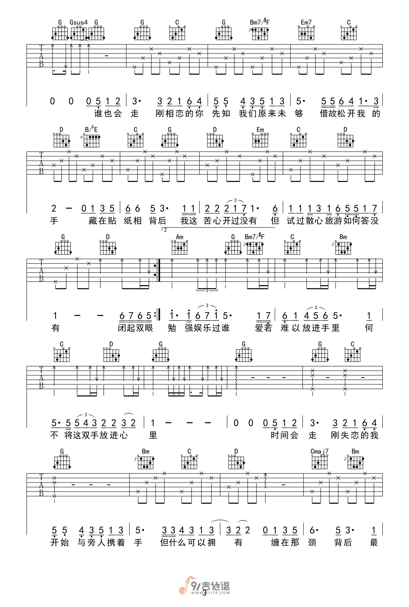 《陈奕迅《人来人往吉他谱》(G调)》内容来自于互联网,不能保证内容的准确性与完整性,仅供学习交流欣赏,请勿用于其它用途,内容版权归原作者及来源网站所有,如有侵犯到您的权益请来信告知,我们将及时删除。