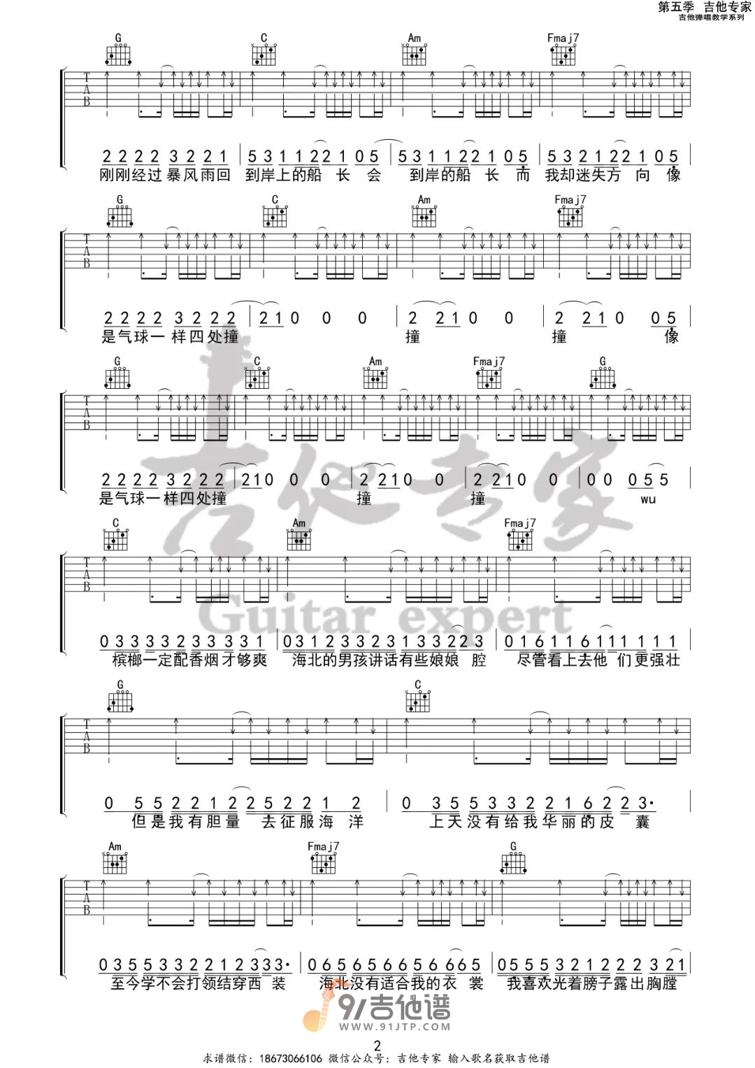 《赵雷《船长吉他谱》(C调)》内容来自于互联网,不能保证内容的准确性与完整性,仅供学习交流欣赏,请勿用于其它用途,内容版权归原作者及来源网站所有,如有侵犯到您的权益请来信告知,我们将及时删除。
