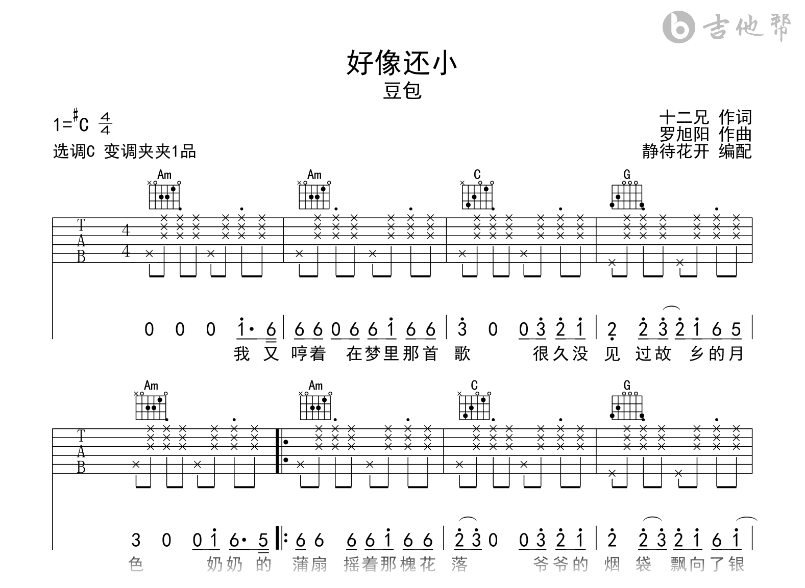 《多想还小》是一首由豆包演唱的温馨歌曲,以其深情的歌词和生动的旋律,让人瞬间回到了童年时光,勾起了无忧无虑的回忆。吉他弹唱谱采用了C调和弦指法,建议使用变调夹夹在第一品位,原调为#C调,演奏速度约为每分钟85拍,难度适中。提供了两张高清图片的完整版六线谱,让你