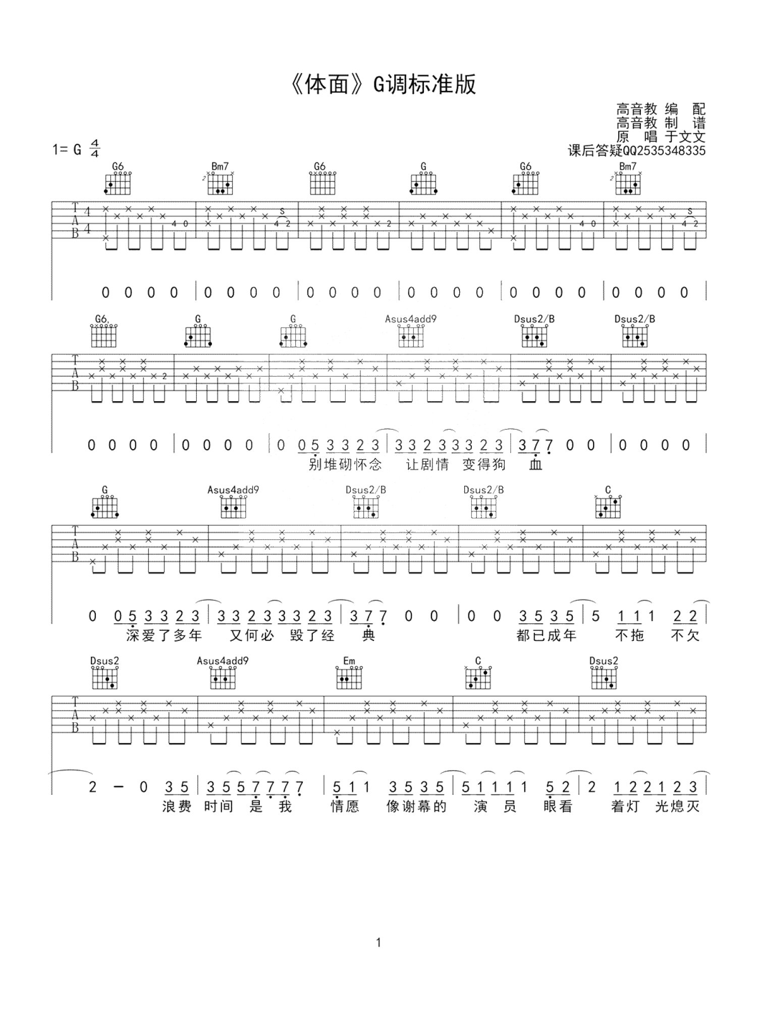 《文文《体面吉他谱》(G调)》内容来自于互联网,不能保证内容的准确性与完整性,仅供学习交流欣赏,请勿用于其它用途,内容版权归原作者及来源网站所有,如有侵犯到您的权益请来信告知,我们将及时删除。