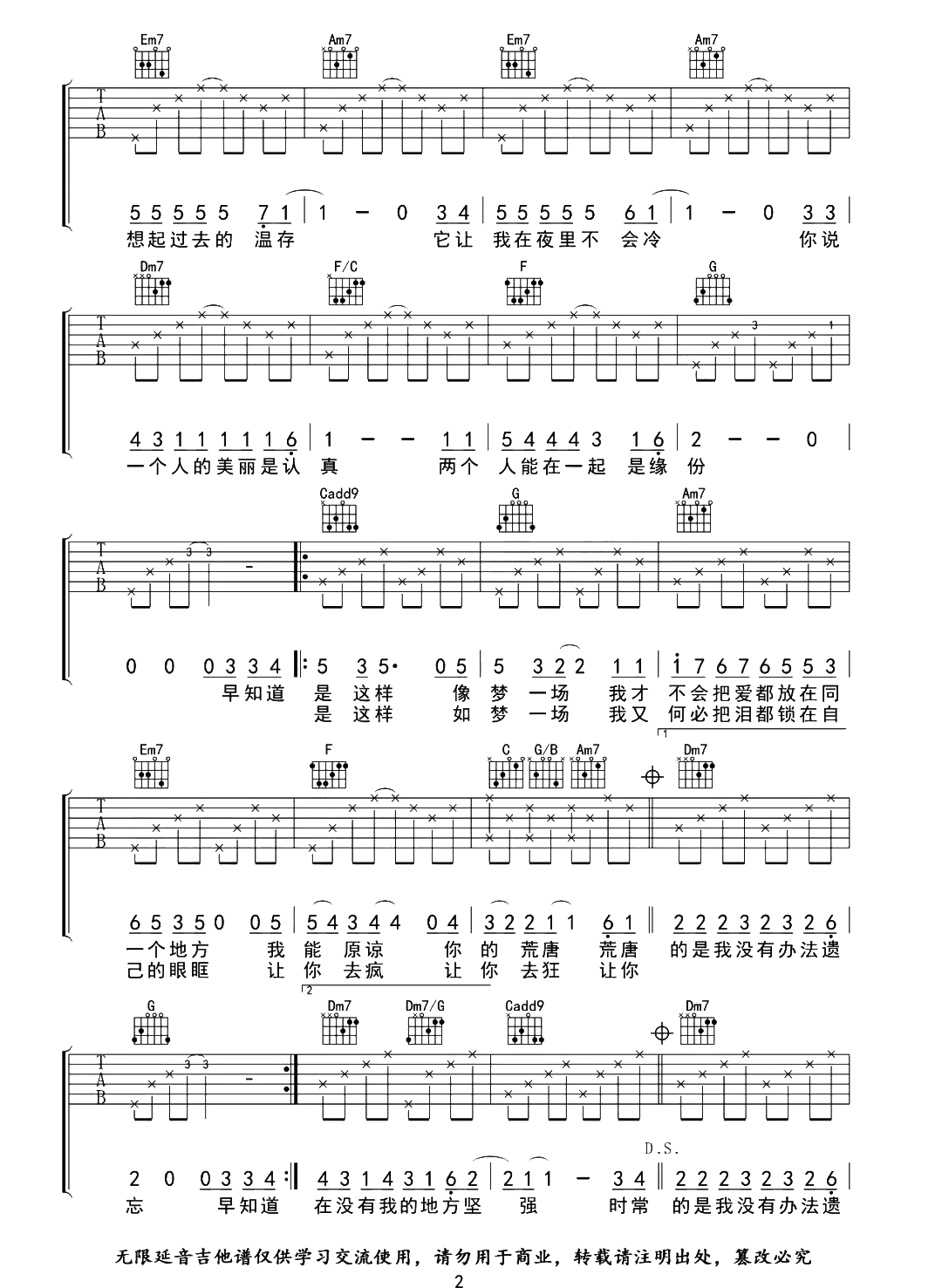 《那英《梦一场吉他谱》(C调)》内容来自于互联网,不能保证内容的准确性与完整性,仅供学习交流欣赏,请勿用于其它用途,内容版权归原作者及来源网站所有,如有侵犯到您的权益请来信告知,我们将及时删除。