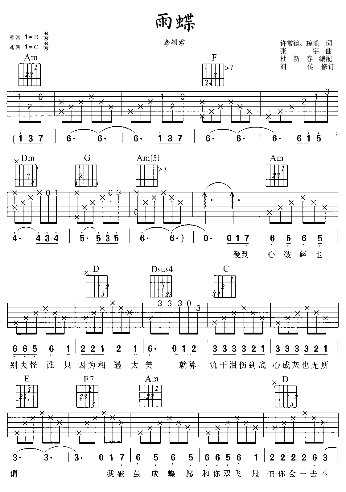 《格格《雨蝶吉他谱》(C调)》内容来自于互联网,不能保证内容的准确性与完整性,仅供学习交流欣赏,请勿用于其它用途,内容版权归原作者及来源网站所有,如有侵犯到您的权益请来信告知,我们将及时删除。