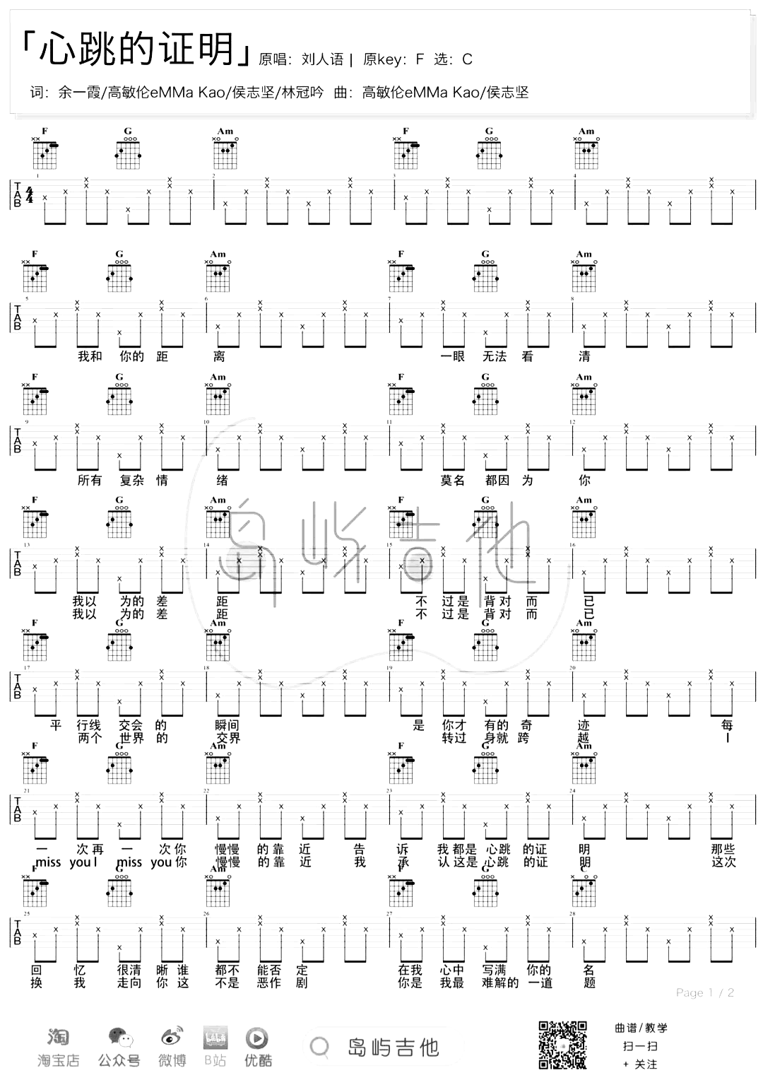 《刘人语《心跳的证明吉他谱》(C调)》内容来自于互联网,不能保证内容的准确性与完整性,仅供学习交流欣赏,请勿用于其它用途,内容版权归原作者及来源网站所有,如有侵犯到您的权益请来信告知,我们将及时删除。