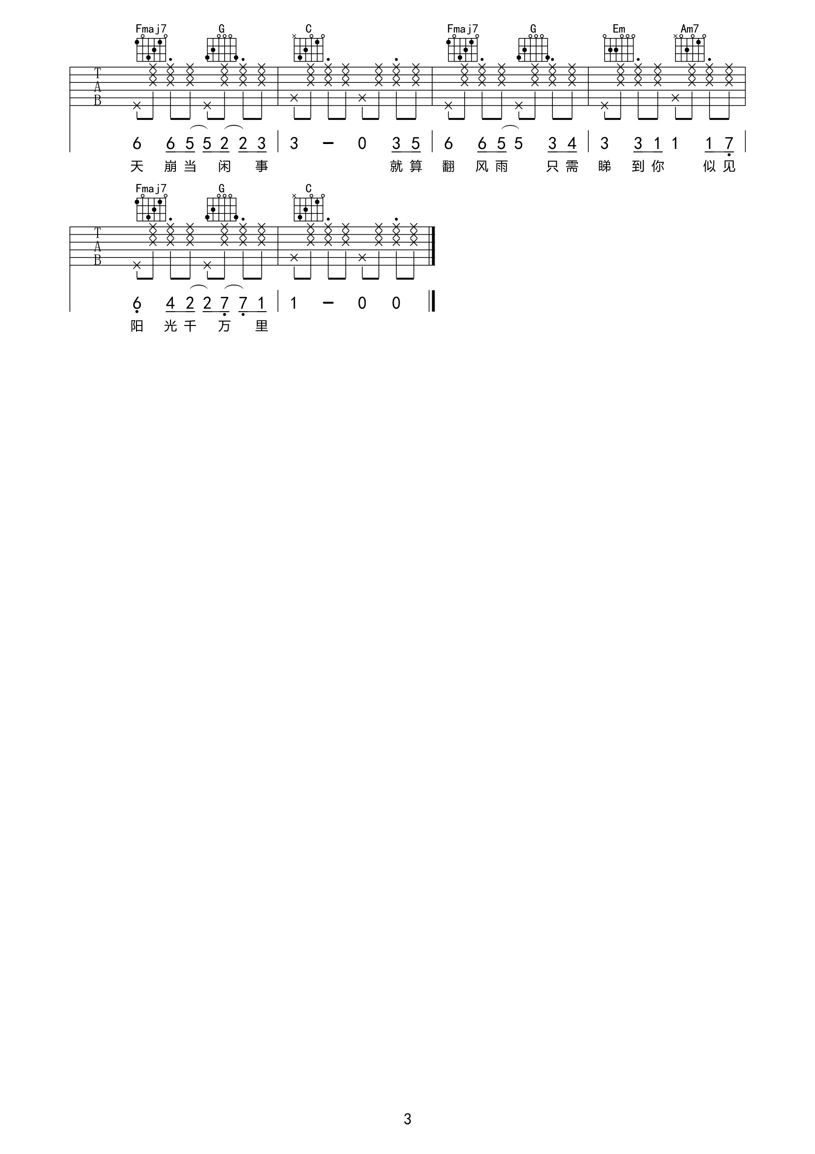 《甘草片r《分分钟需要你吉他谱》(C调)》内容来自于互联网,不能保证内容的准确性与完整性,仅供学习交流欣赏,请勿用于其它用途,内容版权归原作者及来源网站所有,如有侵犯到您的权益请来信告知,我们将及时删除。