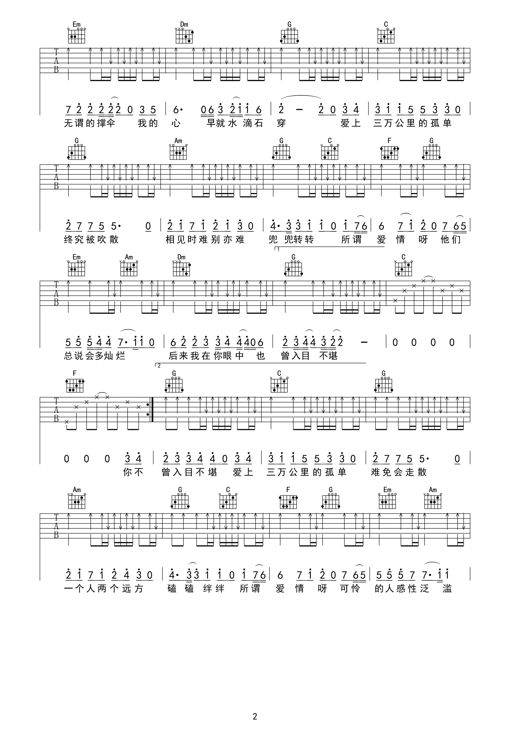 《王小帅《三万公里的孤单吉他谱》(C调)》内容来自于互联网,不能保证内容的准确性与完整性,仅供学习交流欣赏,请勿用于其它用途,内容版权归原作者及来源网站所有,如有侵犯到您的权益请来信告知,我们将及时删除。