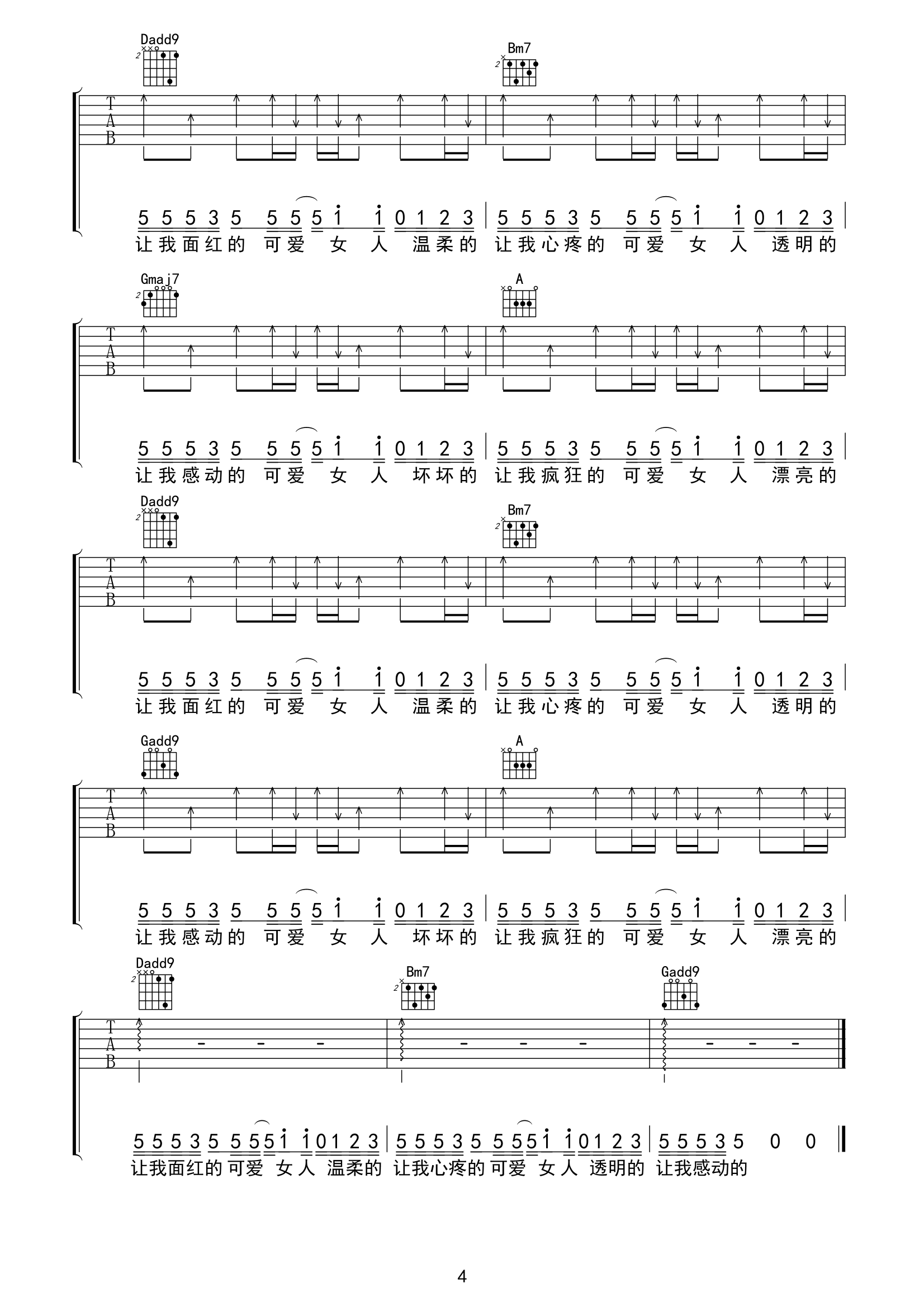 《周杰伦《可爱女人吉他谱》(D调)》内容来自于互联网,不能保证内容的准确性与完整性,仅供学习交流欣赏,请勿用于其它用途,内容版权归原作者及来源网站所有,如有侵犯到您的权益请来信告知,我们将及时删除。