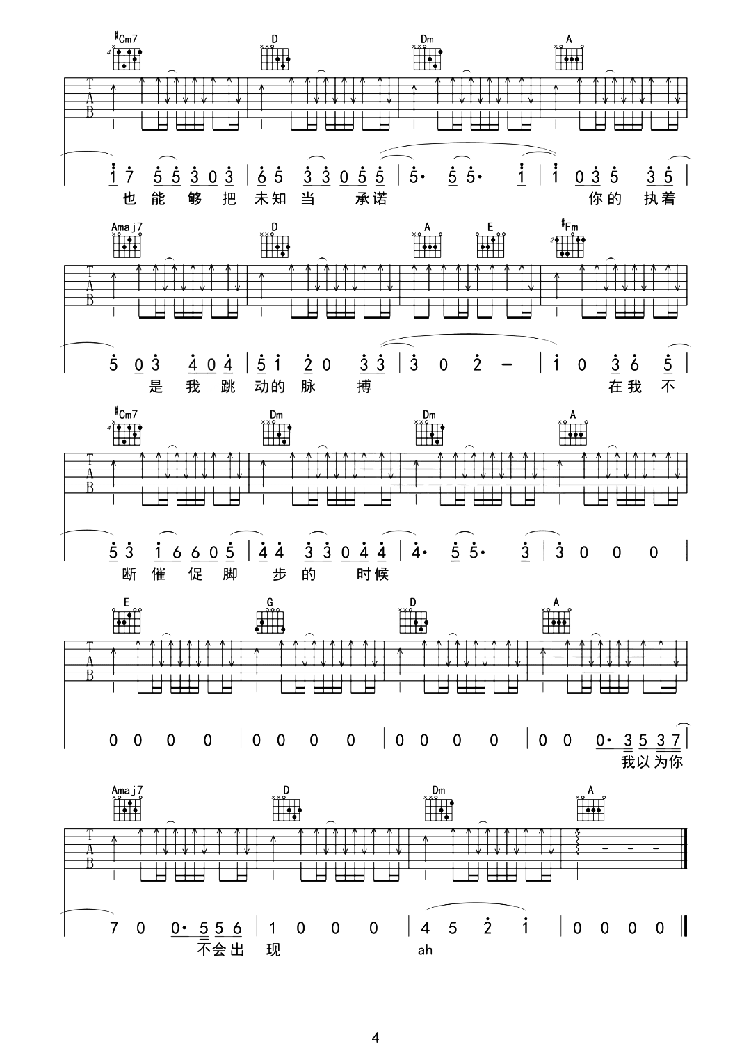 告五人乐队的2022年首发单曲《我以为你不会出现》吉他谱以A调指法演奏,原调B调,建议在1品位使用CAPO,提供4张高清PNG图片谱例,适合初学者演奏。歌曲表达了生活中错过的感情,但只要有爱的人在身边,就能勇往直前,克服未知困难。