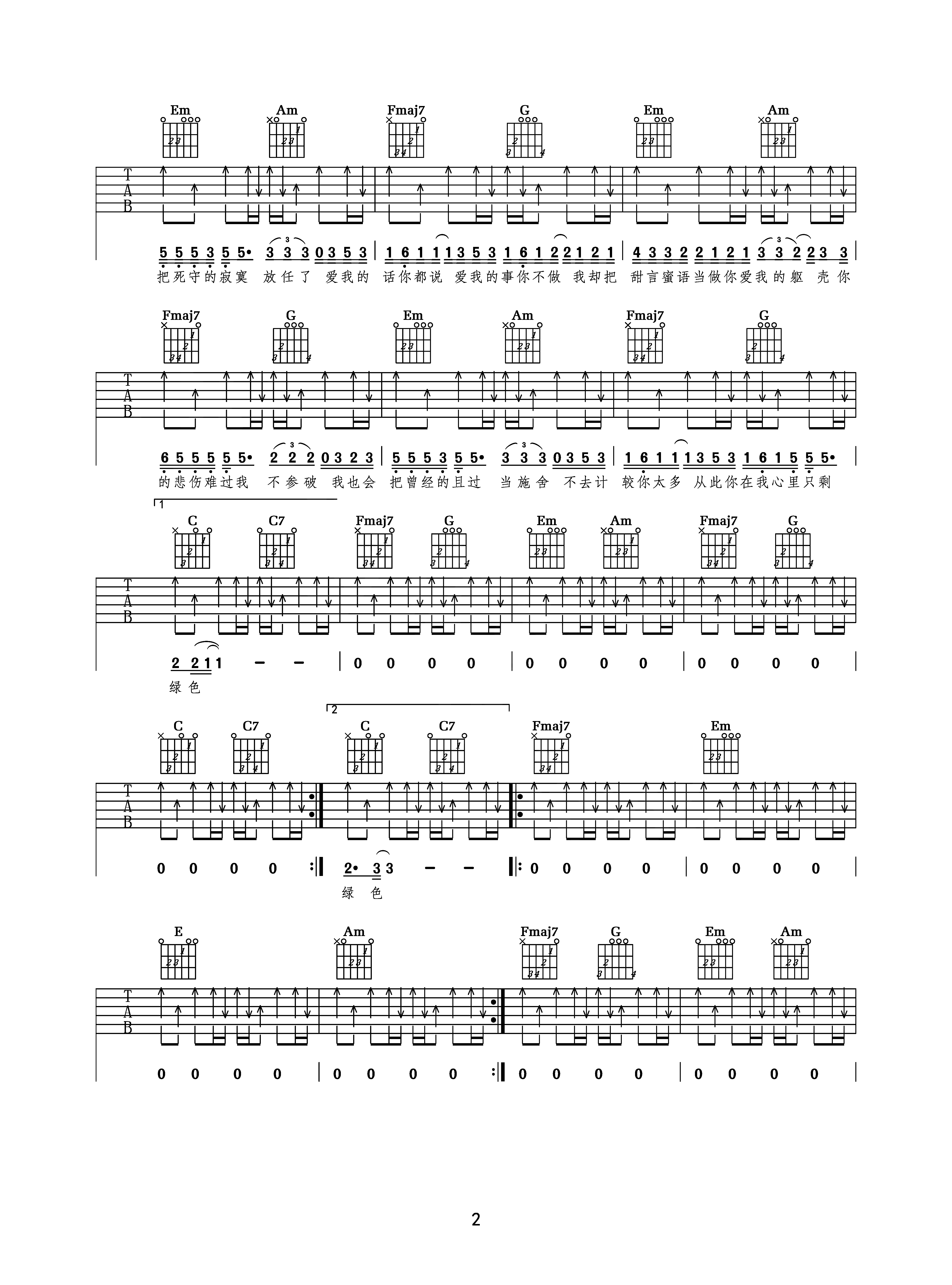 《陈雪凝《绿色吉他谱》(C调)》内容来自于互联网,不能保证内容的准确性与完整性,仅供学习交流欣赏,请勿用于其它用途,内容版权归原作者及来源网站所有,如有侵犯到您的权益请来信告知,我们将及时删除。