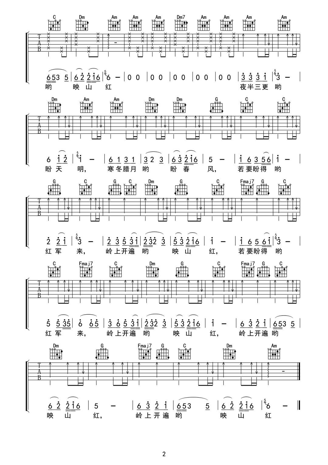 《黄英《映山红吉他谱》(C调)》内容来自于互联网,不能保证内容的准确性与完整性,仅供学习交流欣赏,请勿用于其它用途,内容版权归原作者及来源网站所有,如有侵犯到您的权益请来信告知,我们将及时删除。