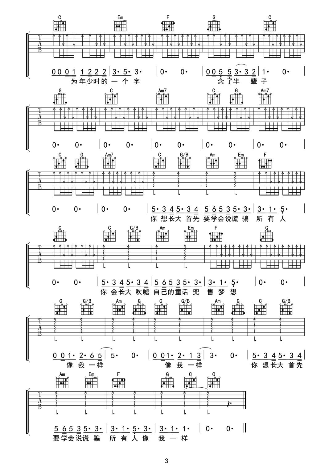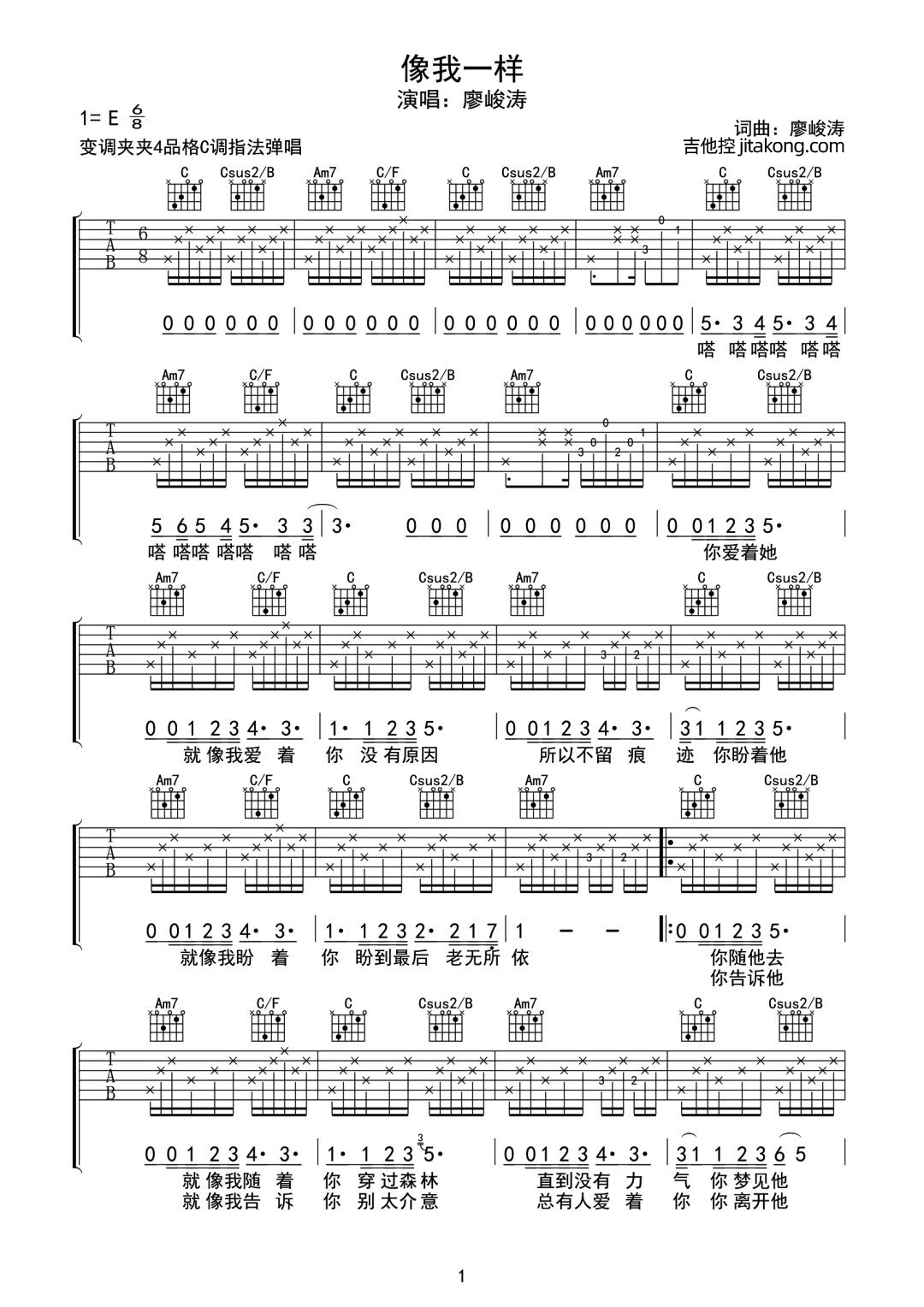 《廖峻涛《像我一样吉他谱》(C调)》内容来自于互联网,不能保证内容的准确性与完整性,仅供学习交流欣赏,请勿用于其它用途,内容版权归原作者及来源网站所有,如有侵犯到您的权益请来信告知,我们将及时删除。