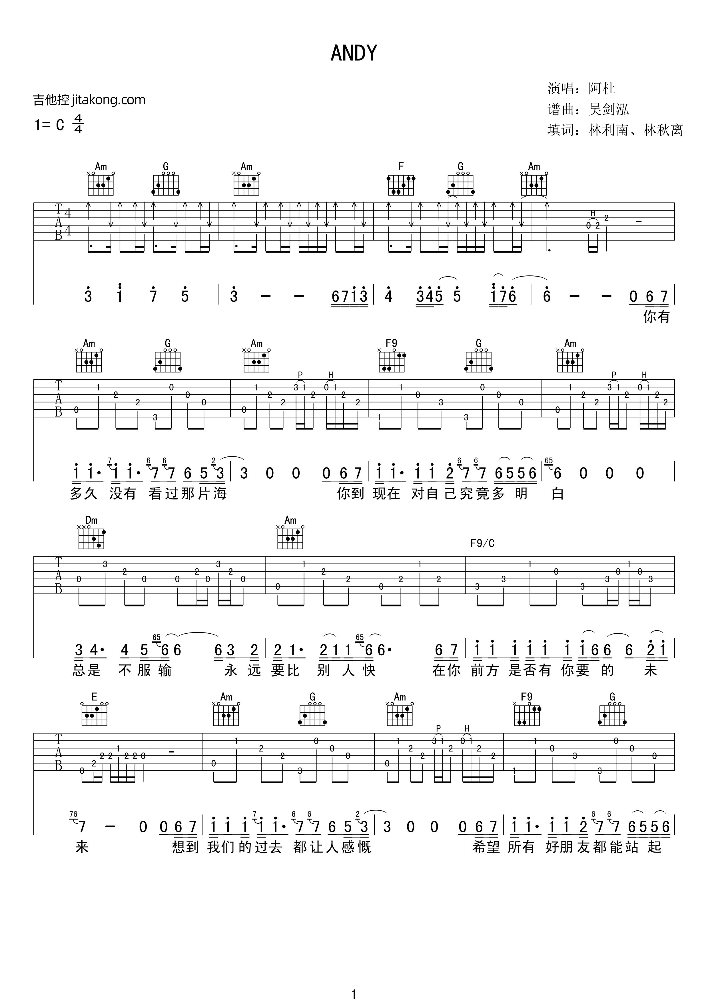 《阿杜《Andy吉他谱》(C调)》内容来自于互联网,不能保证内容的准确性与完整性,仅供学习交流欣赏,请勿用于其它用途,内容版权归原作者及来源网站所有,如有侵犯到您的权益请来信告知,我们将及时删除。
