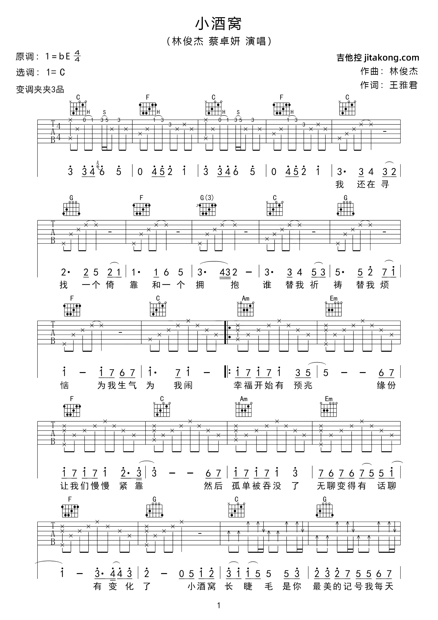 《蔡卓妍《小酒窝吉他谱》(C调)》内容来自于互联网,不能保证内容的准确性与完整性,仅供学习交流欣赏,请勿用于其它用途,内容版权归原作者及来源网站所有,如有侵犯到您的权益请来信告知,我们将及时删除。