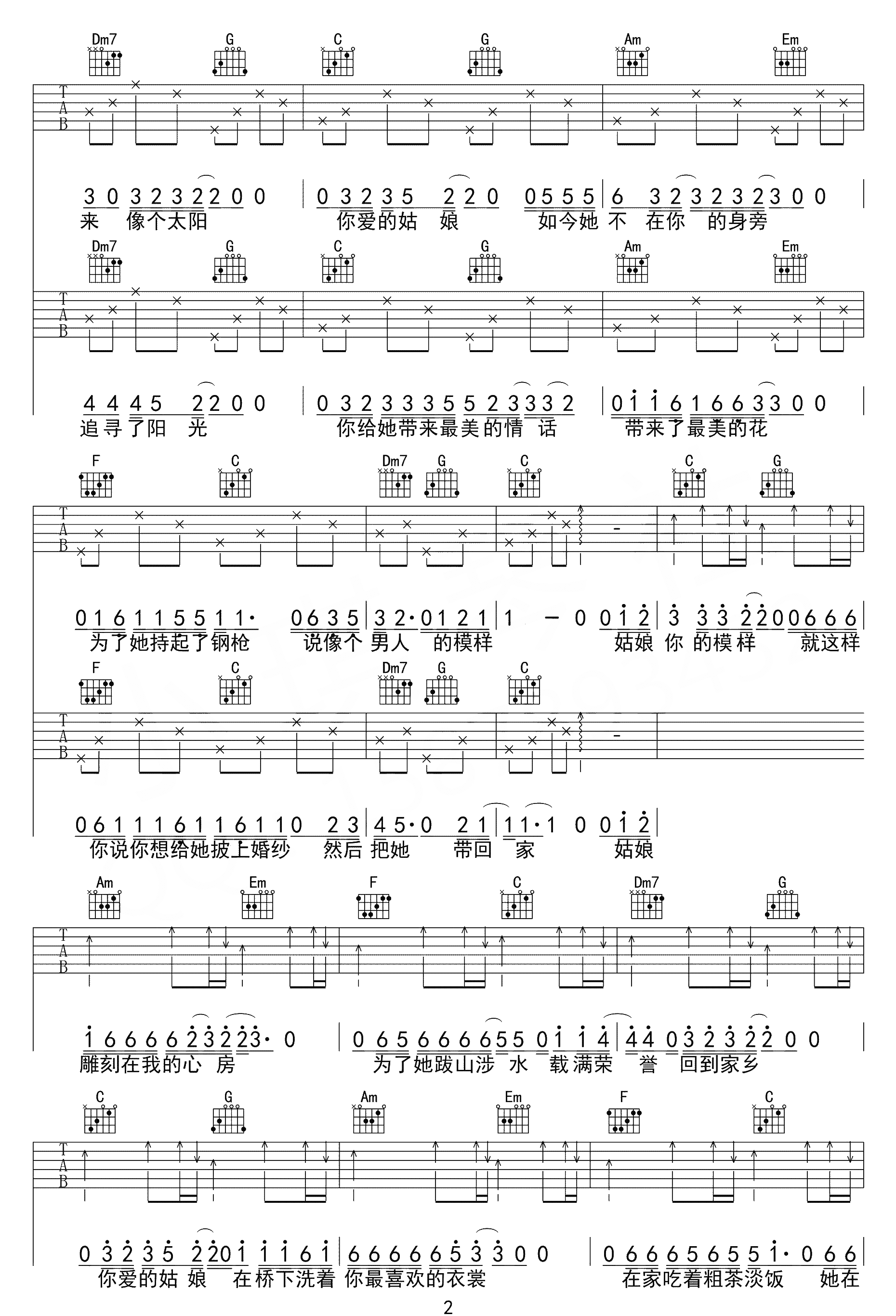 《老樊《你的姑娘吉他谱》(C调)》内容来自于互联网,不能保证内容的准确性与完整性,仅供学习交流欣赏,请勿用于其它用途,内容版权归原作者及来源网站所有,如有侵犯到您的权益请来信告知,我们将及时删除。
