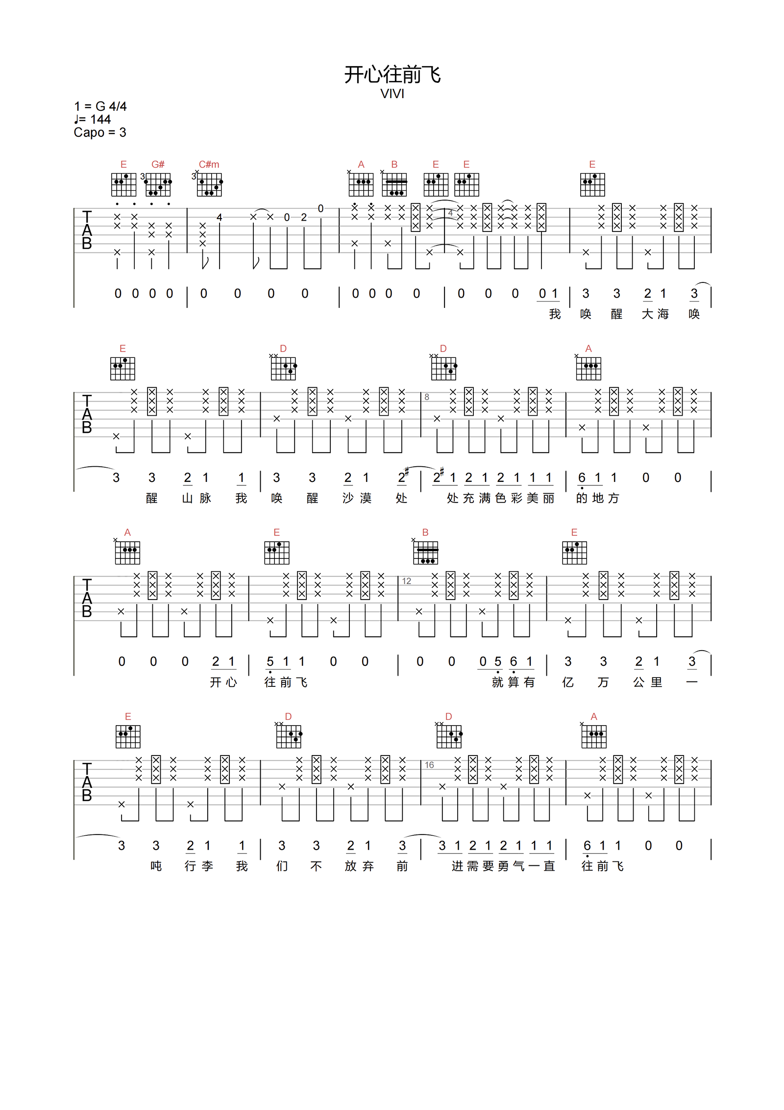 《黎明《开心往前飞吉他谱》(G调)》内容来自于互联网,不能保证内容的准确性与完整性,仅供学习交流欣赏,请勿用于其它用途,内容版权归原作者及来源网站所有,如有侵犯到您的权益请来信告知,我们将及时删除。