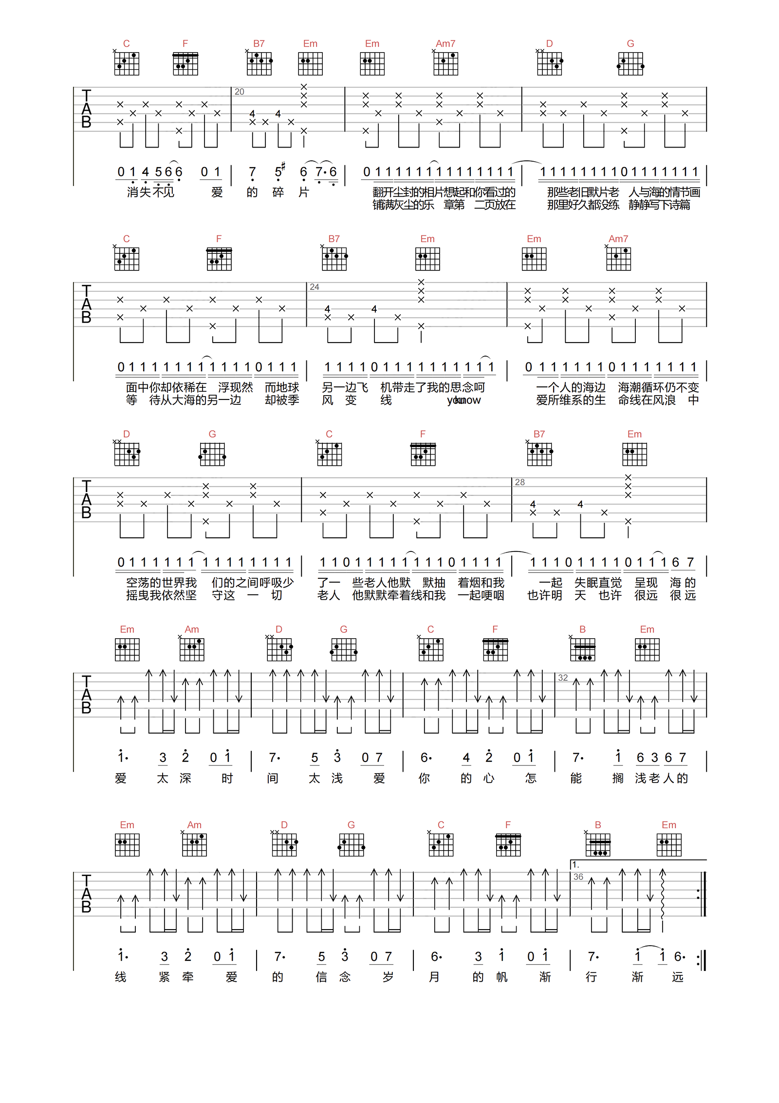 《海鸣威《老人与海吉他谱》(G调)》内容来自于互联网,不能保证内容的准确性与完整性,仅供学习交流欣赏,请勿用于其它用途,内容版权归原作者及来源网站所有,如有侵犯到您的权益请来信告知,我们将及时删除。