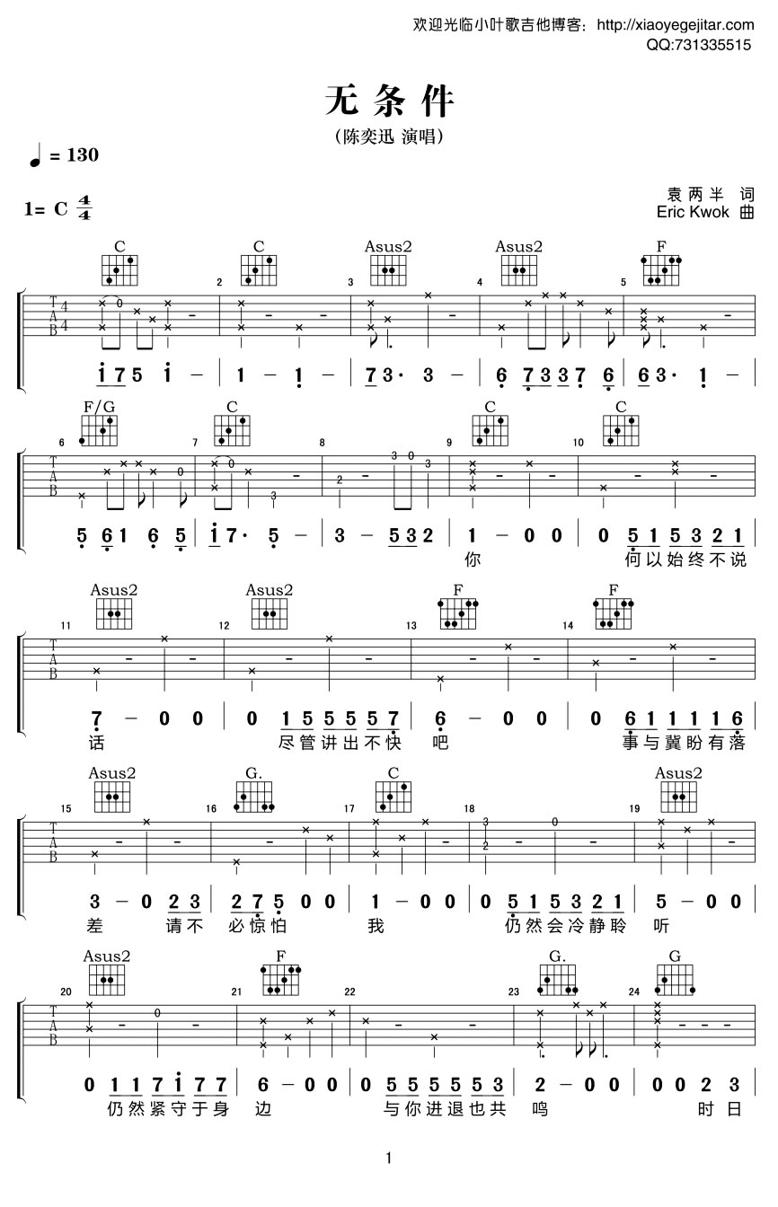 《陈奕迅《无条件吉他谱》(C调)》内容来自于互联网,不能保证内容的准确性与完整性,仅供学习交流欣赏,请勿用于其它用途,内容版权归原作者及来源网站所有,如有侵犯到您的权益请来信告知,我们将及时删除。