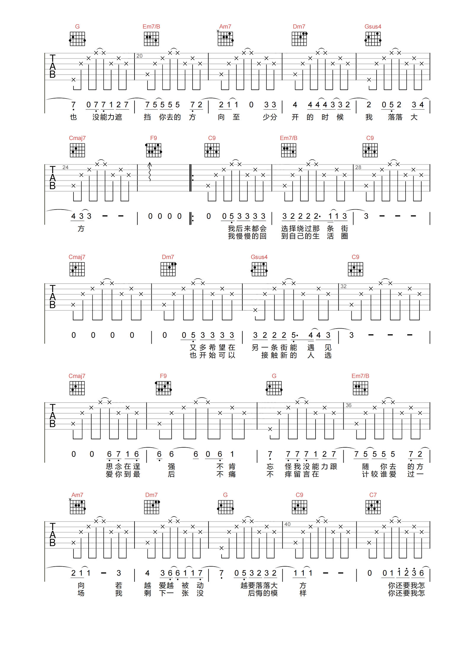 《薛之谦《你还要我怎样吉他谱》(C调)》内容来自于互联网,不能保证内容的准确性与完整性,仅供学习交流欣赏,请勿用于其它用途,内容版权归原作者及来源网站所有,如有侵犯到您的权益请来信告知,我们将及时删除。