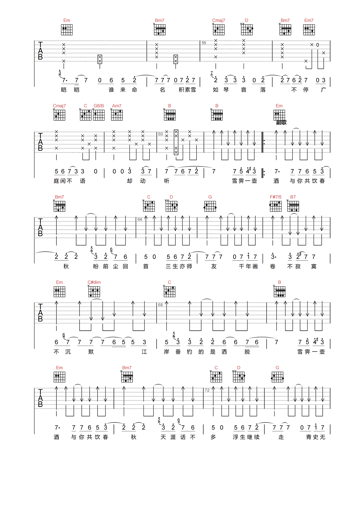 《纸上雪》是由方文山作词,许嵩作曲并演唱的一首歌曲。在这首歌中,许嵩以低吟浅唱勾勒出曲中、画中的雪景,仿佛一幅山河雪景图跃然眼前。歌曲传达了王维般的闲适恬淡生活情趣,同时也表达了对故人的深深怀念。吉他谱选用C调,速度95拍每分钟,节奏4/4拍,难度3级较简单,