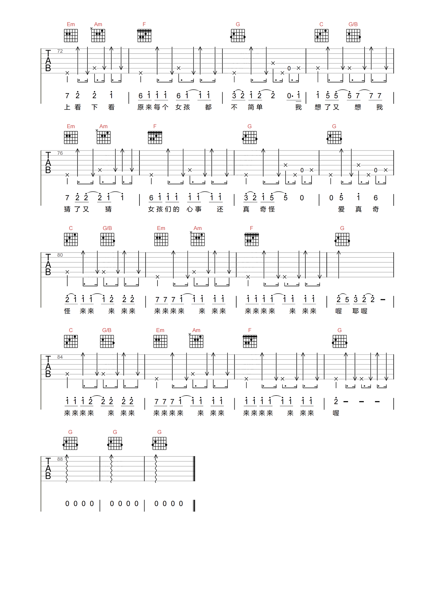 《任贤齐《对面的女孩看过来吉他谱》(C调)》内容来自于互联网,不能保证内容的准确性与完整性,仅供学习交流欣赏,请勿用于其它用途,内容版权归原作者及来源网站所有,如有侵犯到您的权益请来信告知,我们将及时删除。