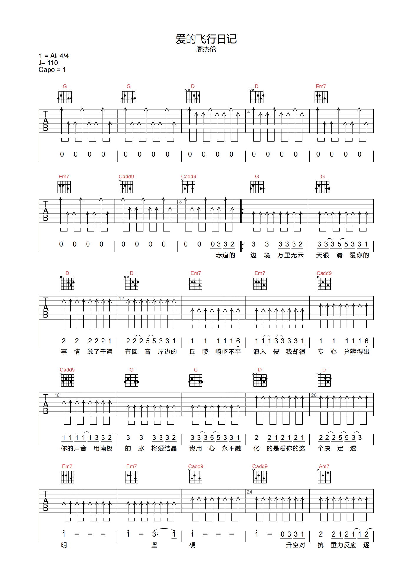 《飞行日记《爱的吉他谱》(G调)》内容来自于互联网,不能保证内容的准确性与完整性,仅供学习交流欣赏,请勿用于其它用途,内容版权归原作者及来源网站所有,如有侵犯到您的权益请来信告知,我们将及时删除。