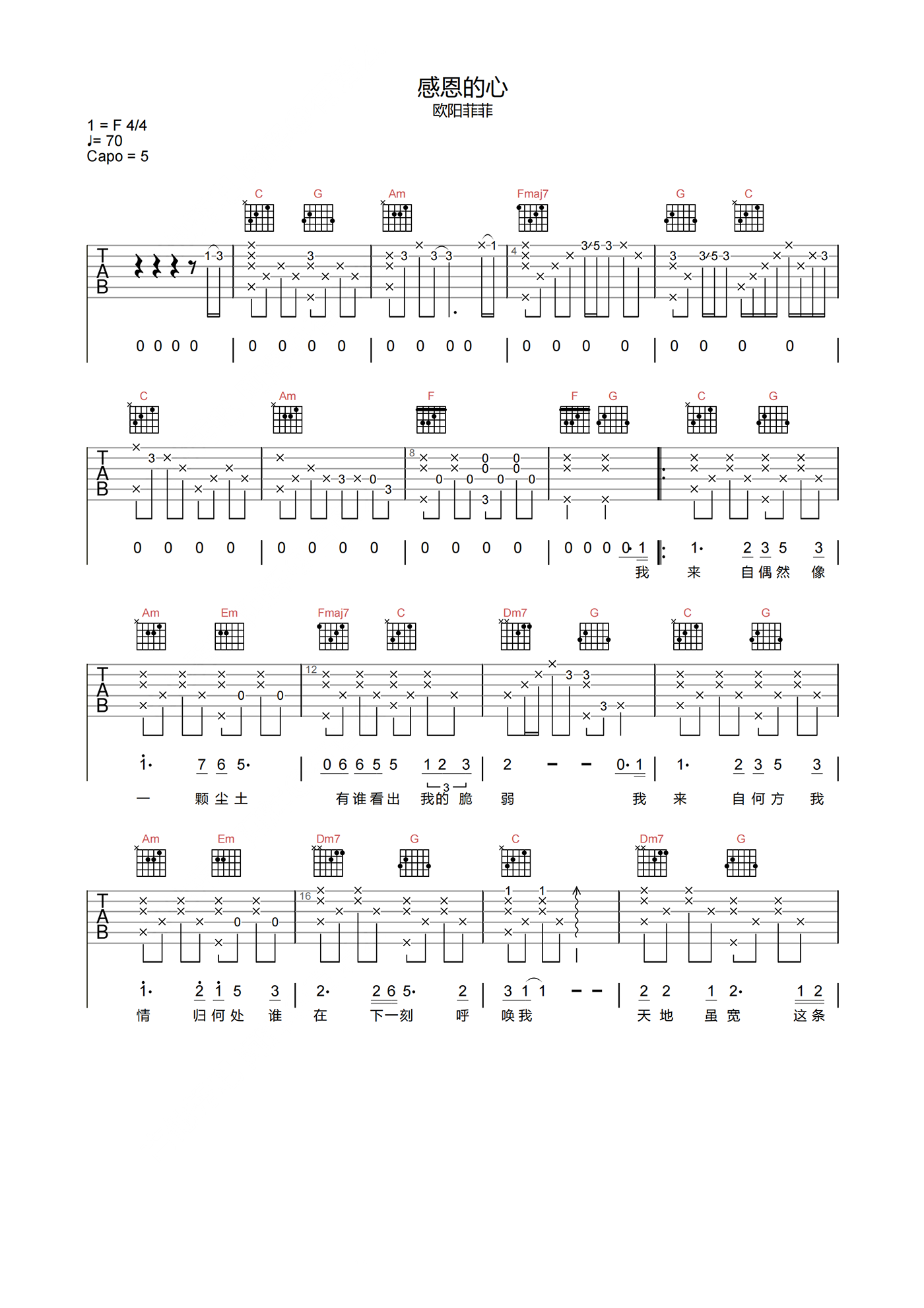 《欧阳菲菲《感恩的心吉他谱》(C调)》内容来自于互联网,不能保证内容的准确性与完整性,仅供学习交流欣赏,请勿用于其它用途,内容版权归原作者及来源网站所有,如有侵犯到您的权益请来信告知,我们将及时删除。