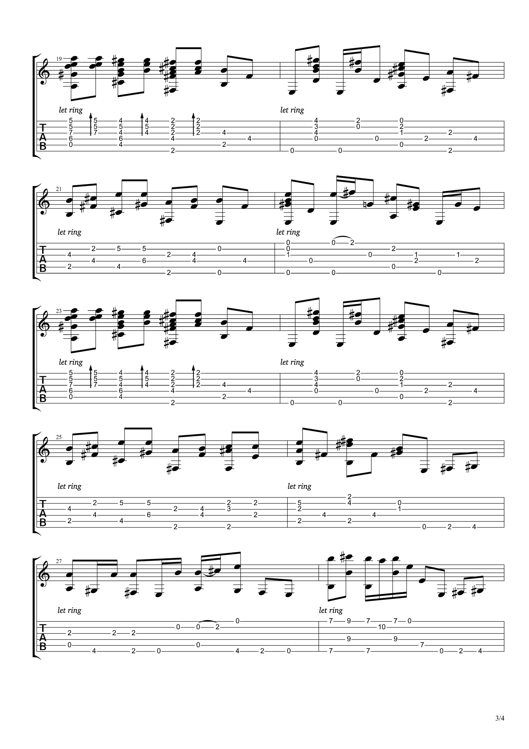 《玫瑰玫瑰我爱你》指弹谱,源自知名国语歌曲,以清晰明快的曲调而著称。这首令人耳熟能详的曲子,总能勾勒出夜上海的浪漫画面,沉醉在其迷幻旋律之中。这份谱面共包括4张高清图片,演奏时要维持每分钟120拍的速度,采用4/4拍的韵律,难度适中,只需灵活掌握好节奏感即可。
