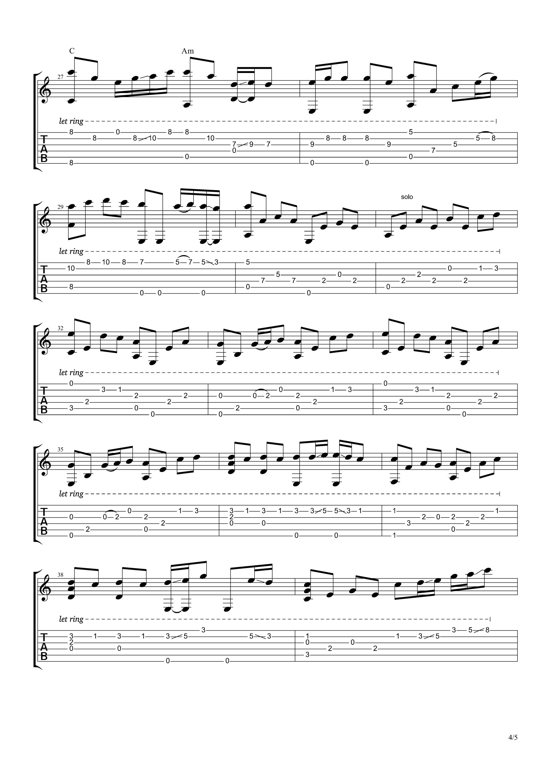 《伤心太平洋》是一首由任贤齐演唱的歌曲,也是电视剧《神雕侠侣》的片尾曲。这首歌曲唤起了过去的回忆,充满了伤感情感。它的吉他指弹谱包括5张高清图片,适合演奏者以84拍每分钟的速度演奏,采用4/4拍的节奏,难度相对简单,适合3级水平的指弹演奏者。这首歌曲通过音乐将
