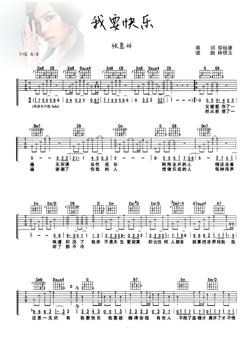 《张惠妹《我要快乐吉他谱》(G调)》内容来自于互联网,不能保证内容的准确性与完整性,仅供学习交流欣赏,请勿用于其它用途,内容版权归原作者及来源网站所有,如有侵犯到您的权益请来信告知,我们将及时删除。